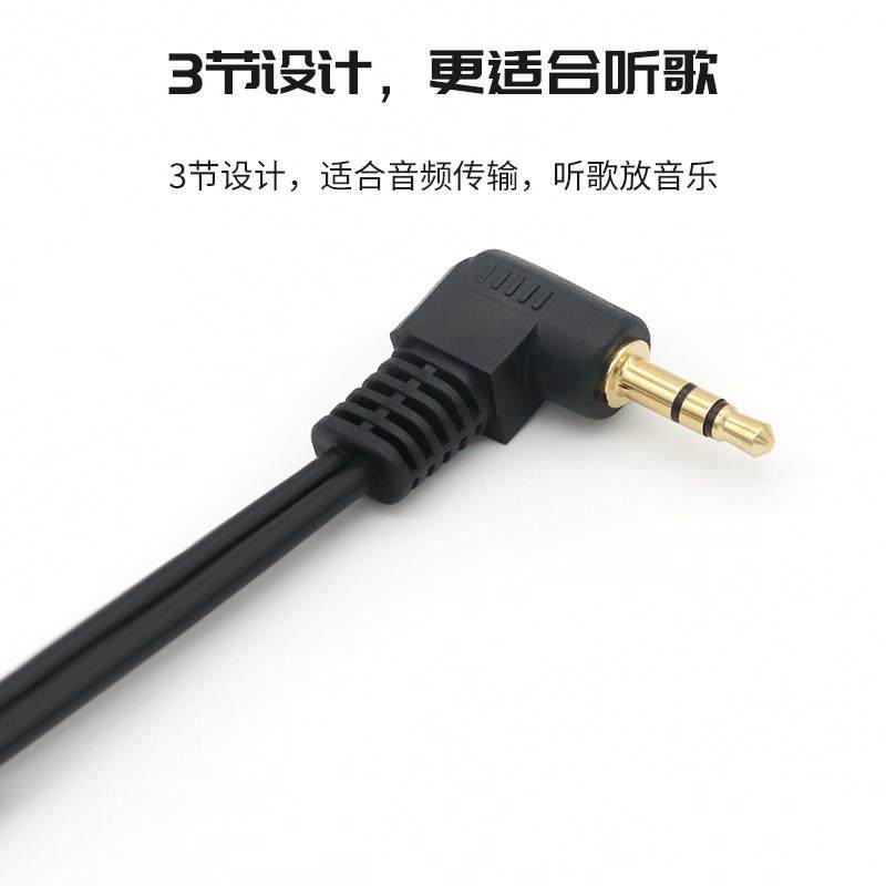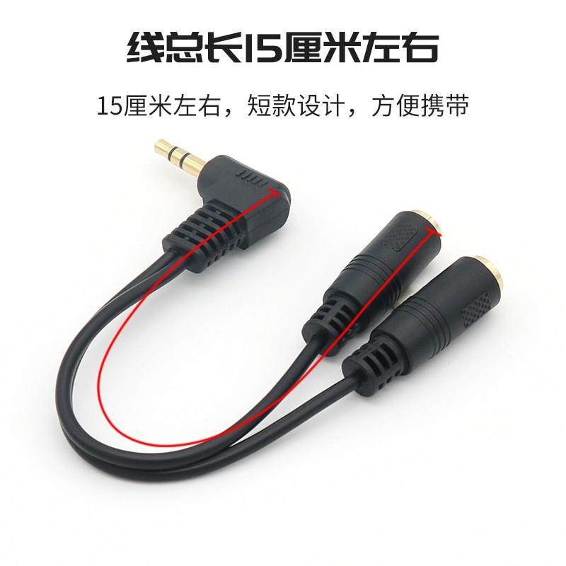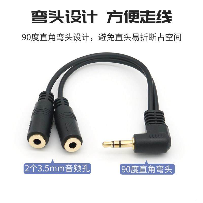 3.5mm一分二音频线弯头转接线手机电脑接2副耳机音箱一拖二双人听