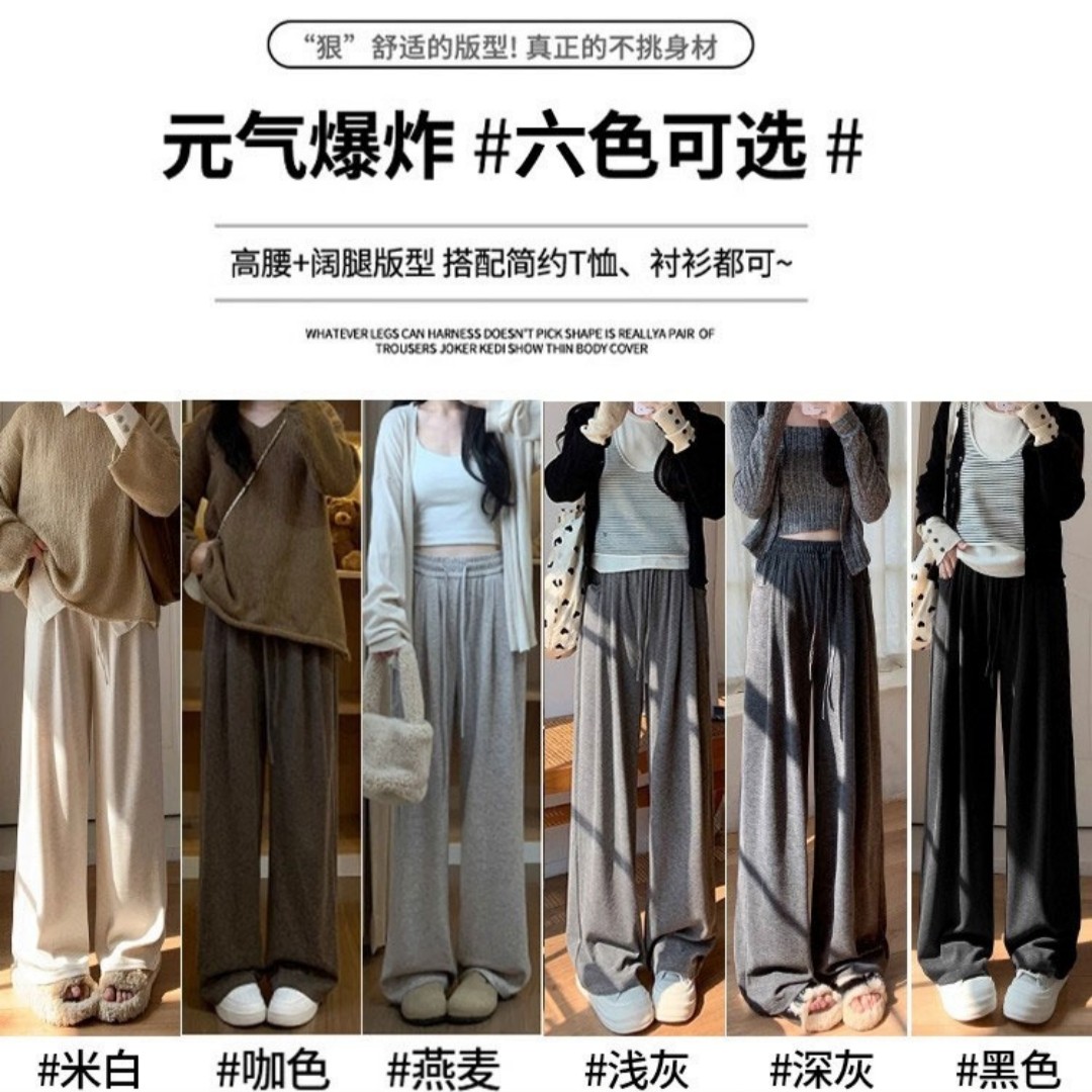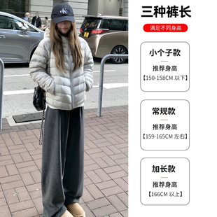 显瘦垂感阔腿裤 加绒高腰休闲宽松慵懒直筒裤 女秋冬季 深灰色糯米裤