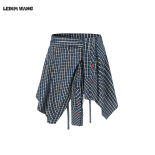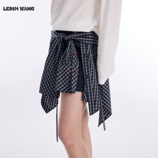 一片式 新款 叠穿搭片撞色半身裙配饰 WANG格子屁帘女2026春季 LEDIM