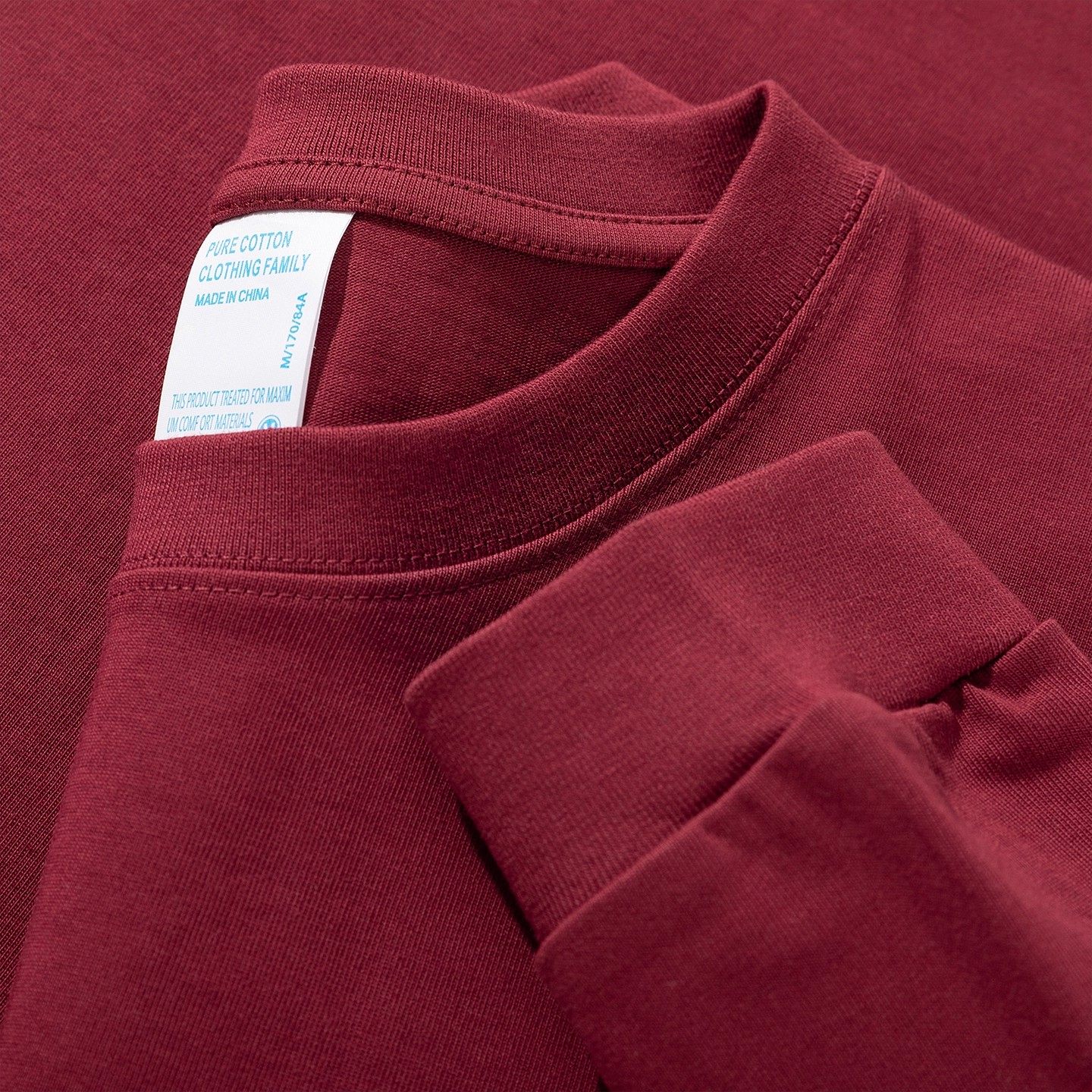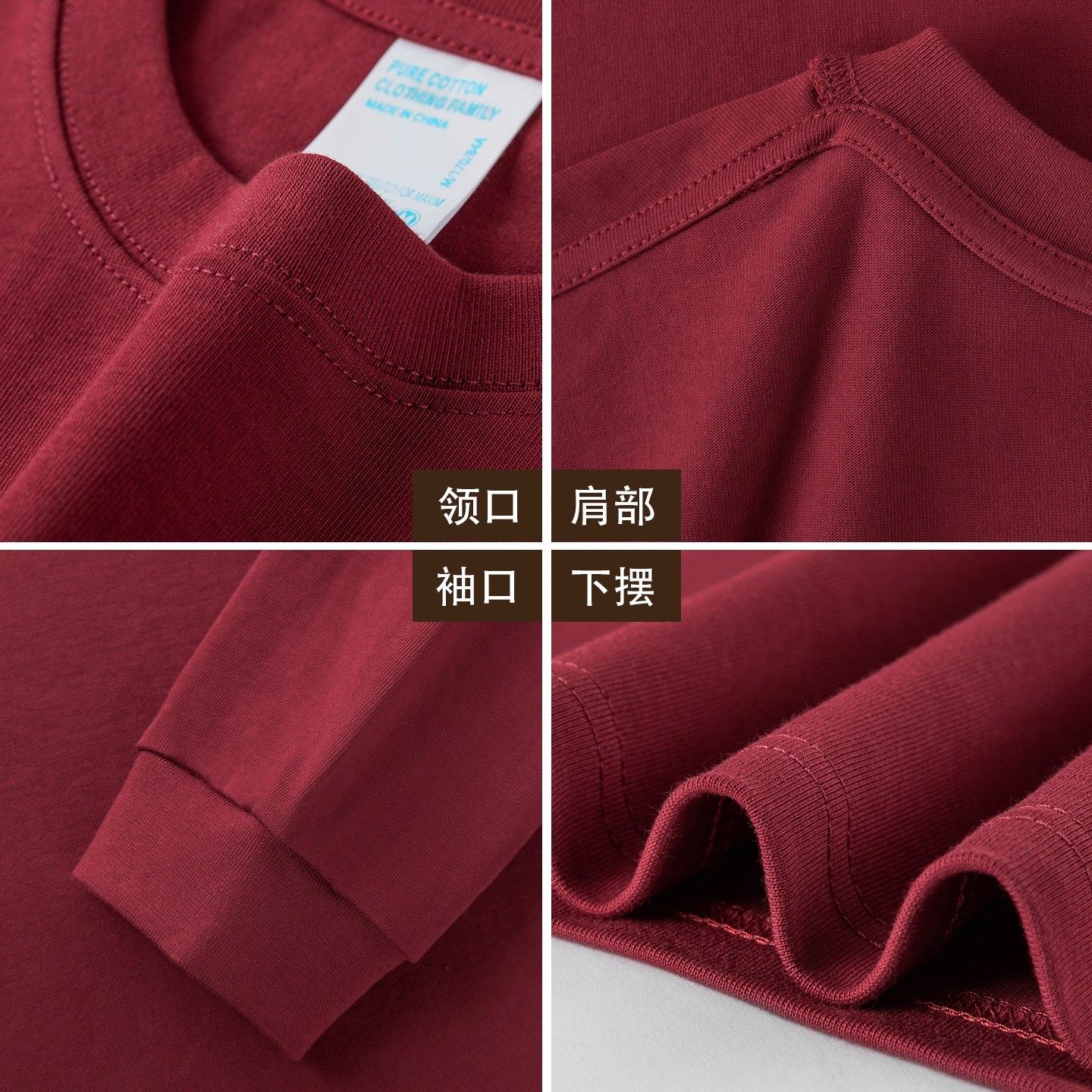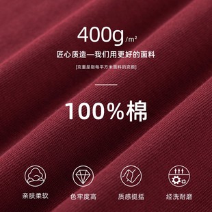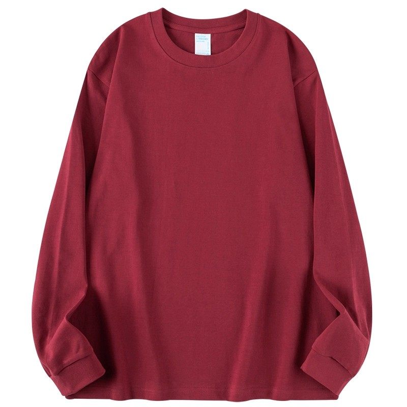 男女款 厚实内搭打底衫 t恤秋冬季 新疆纯棉400g重磅酒红色圆领长袖