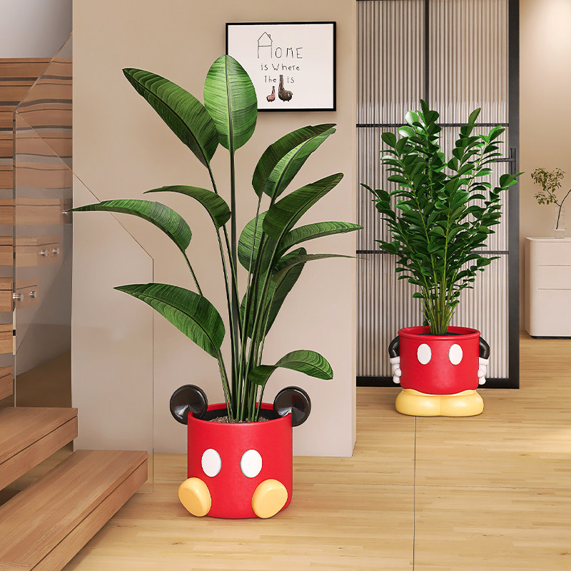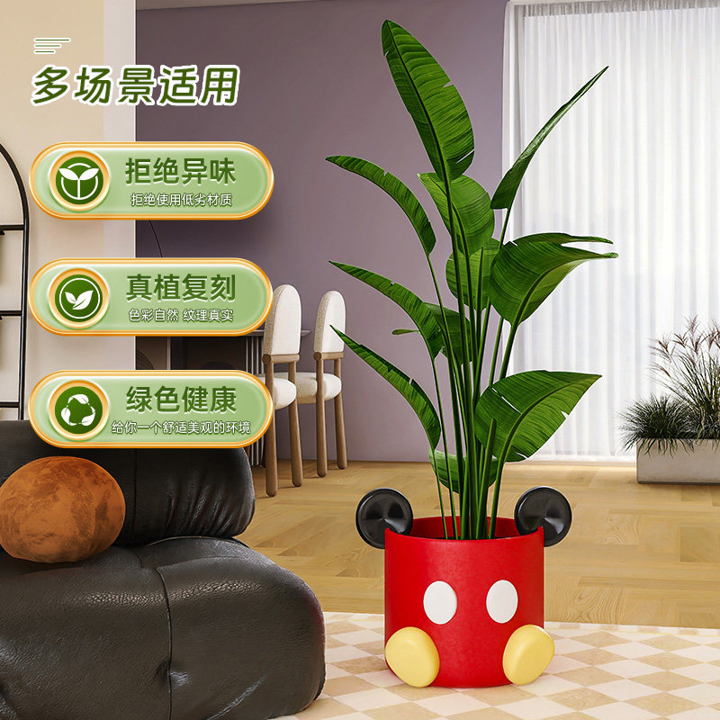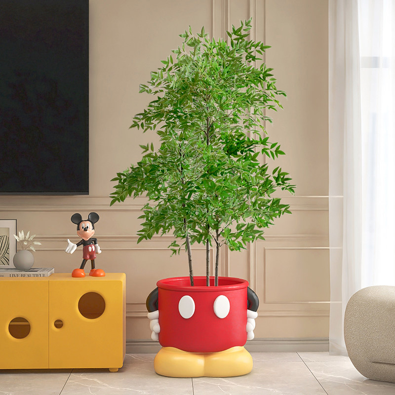 客厅落地花盆电视柜旁大型假盆栽摆件卡通装 饰品创意花瓶仿真绿植