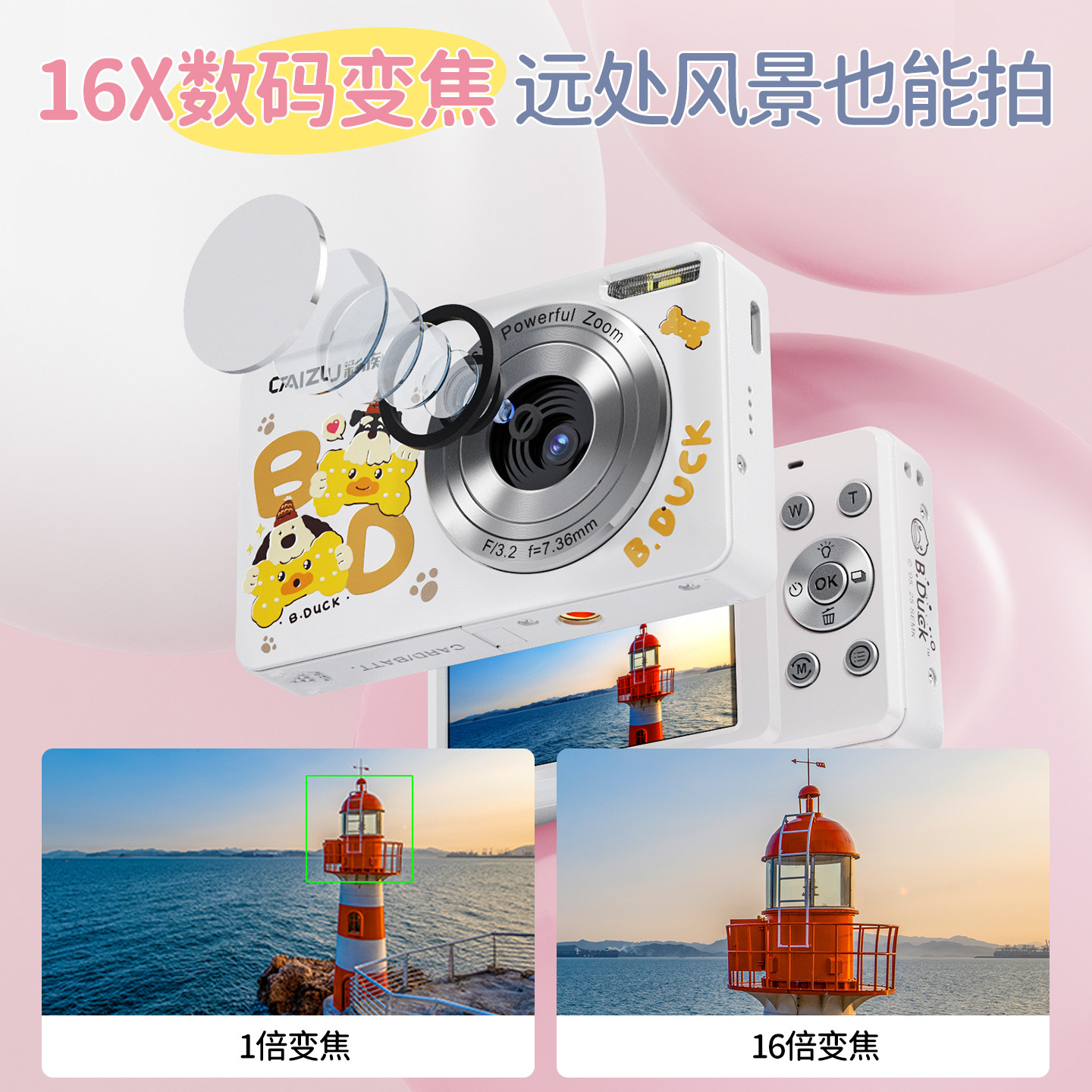 相机入门照相机CCD卡片相机 彩族Z15高清学生数码 小黄鸭联名款