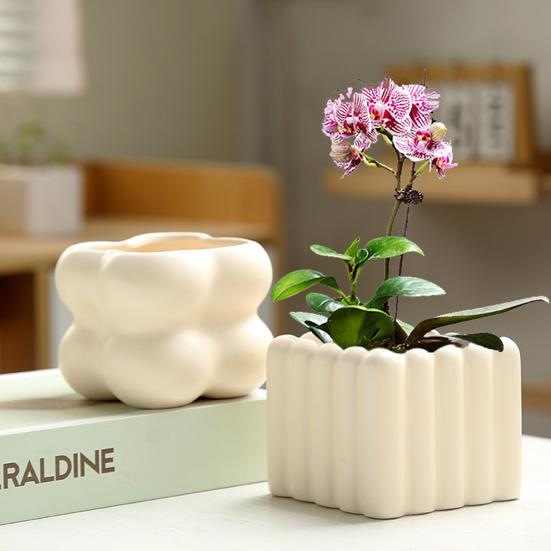 蝴蝶兰小盆栽拼组花盆圆形塑料洋兰定植花钵ins风连体可爱异形盆