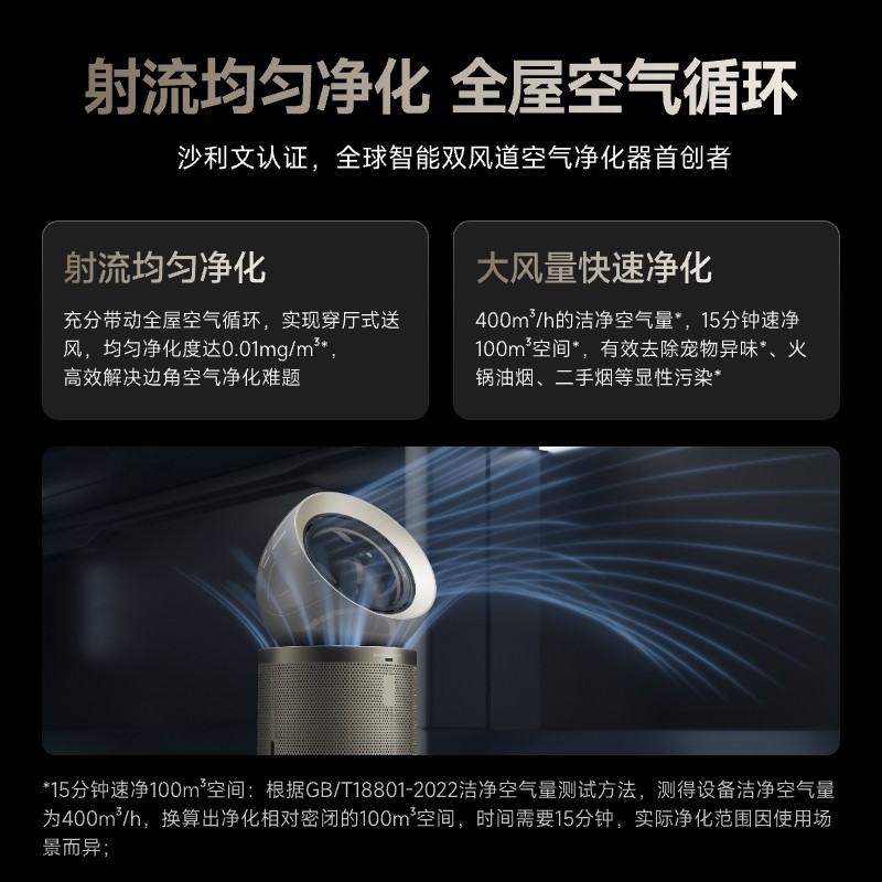 安德迈母婴级除过敏源宠物吸猫毛浮毛空气净化器除臭除尘二手烟