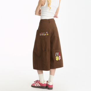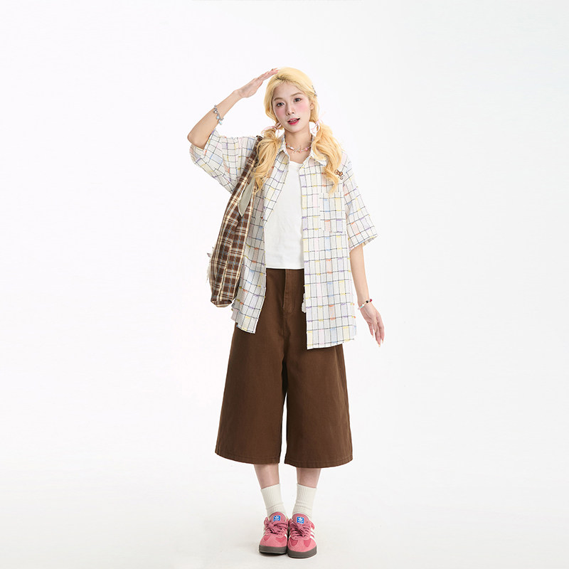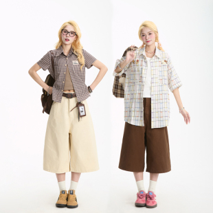 女字母刺绣多口袋直筒显瘦休闲百搭短裤 七分裤 新款 NERESUM夏季