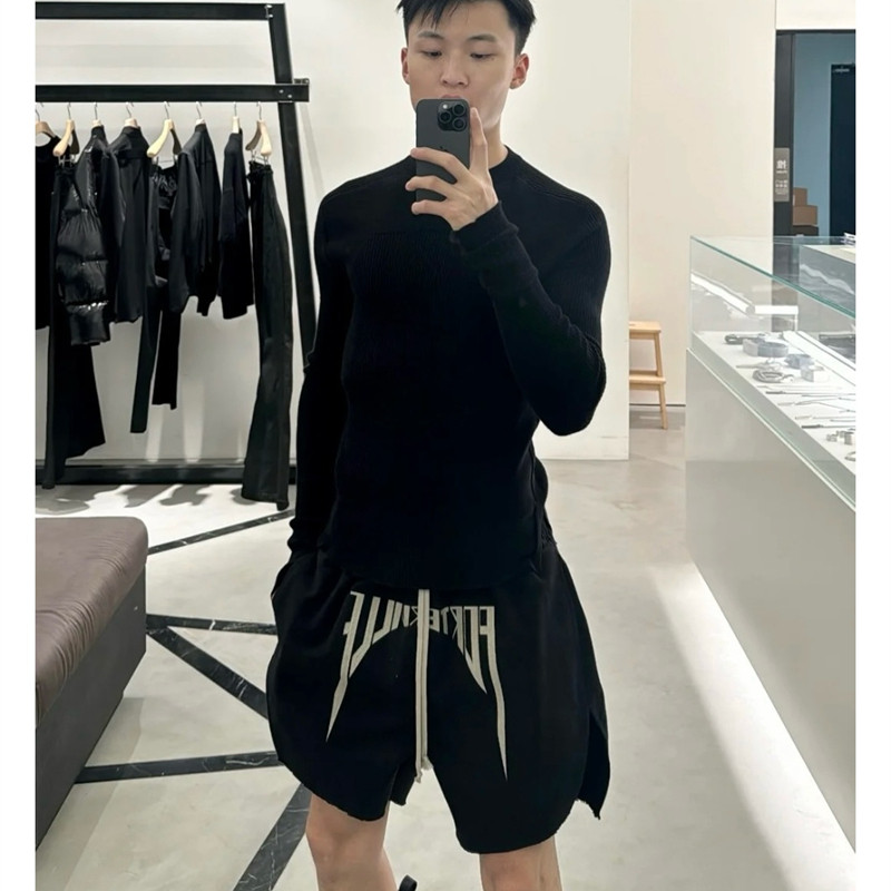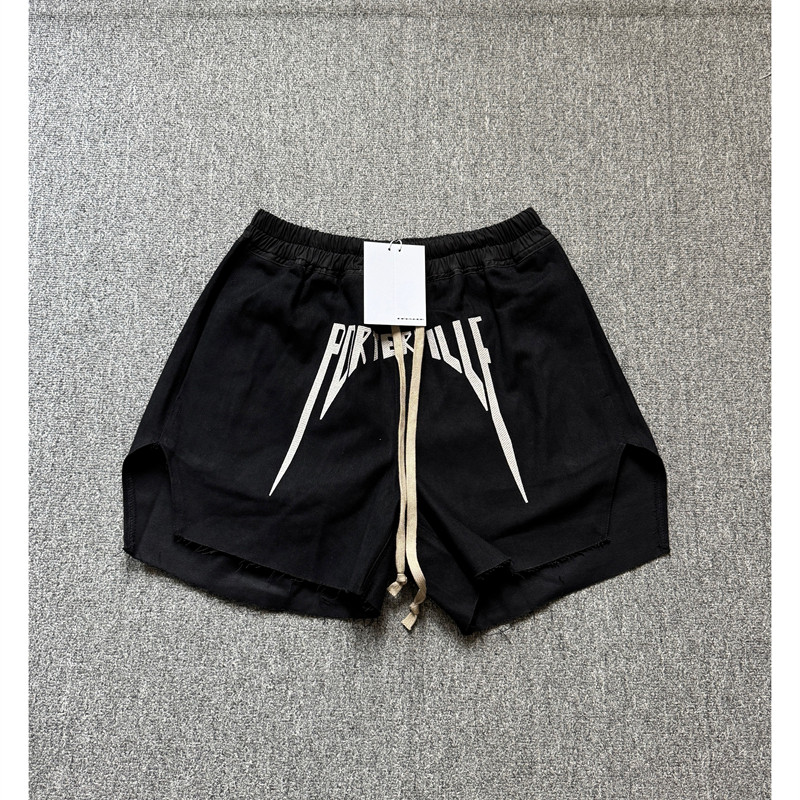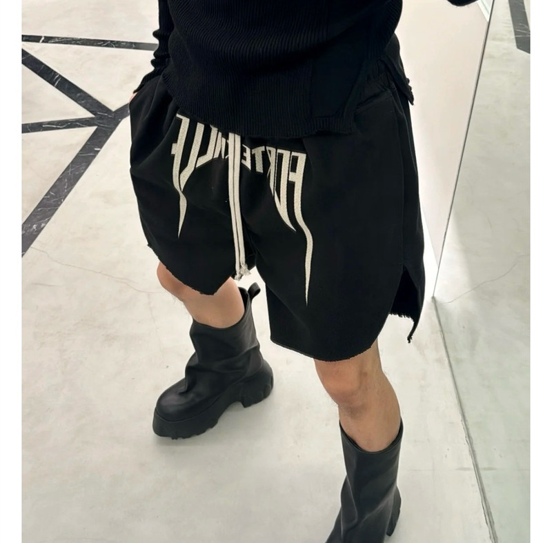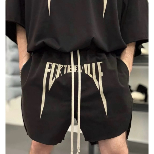 比伯街拍同款 宽松刺绣字母logo开叉毛边拳击男短裤 24wf秀款 RO风格