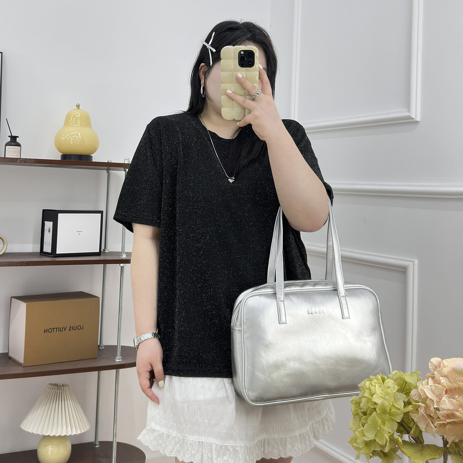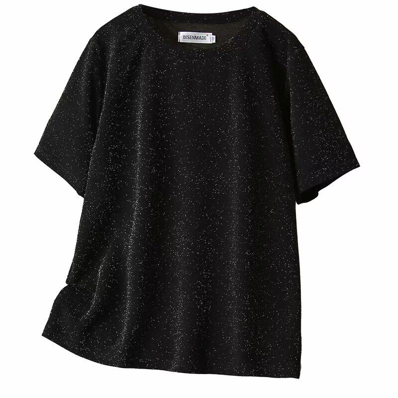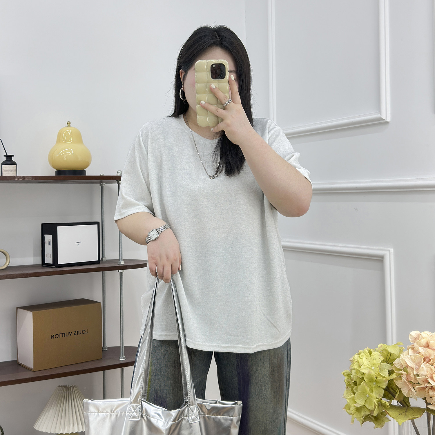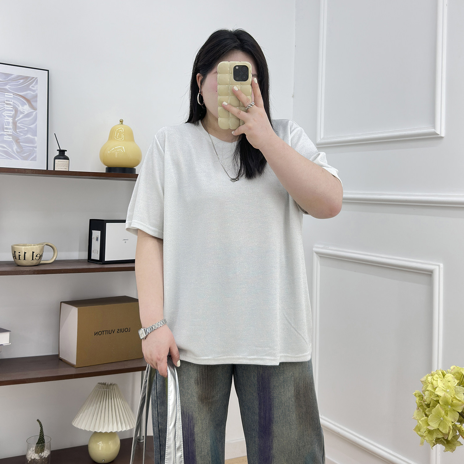 宛宛家百搭亮丝T恤女夏大码 上衣潮ins风百搭 宽松显瘦胖mm遮肉短袖