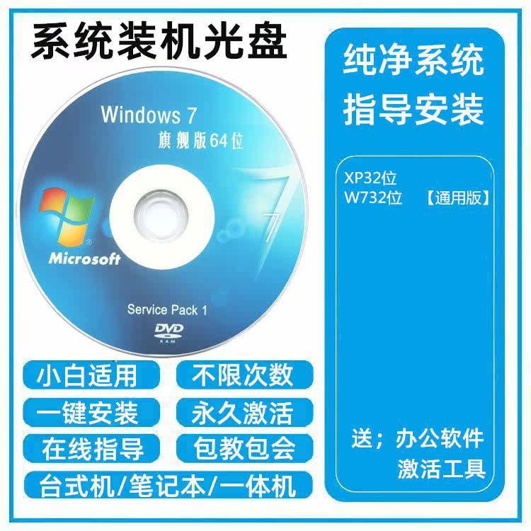 机光碟u盘 w7纯净装 系统盘笔记本台式 电脑一键pe启动光盘重xp安装