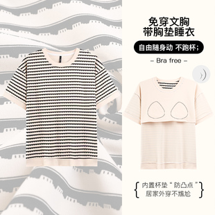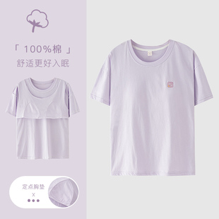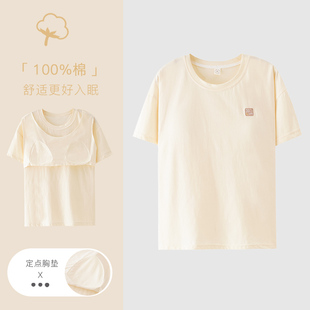 100%睡衣女单件上衣遮胸防凸点纯棉夏季 可外穿 t恤带胸垫一体薄款