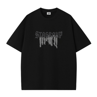 重磅纯棉黑色t恤 男女情侣夏季 STA旗舰店潮牌美式 字母宽松短袖