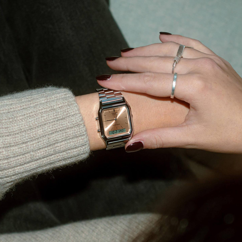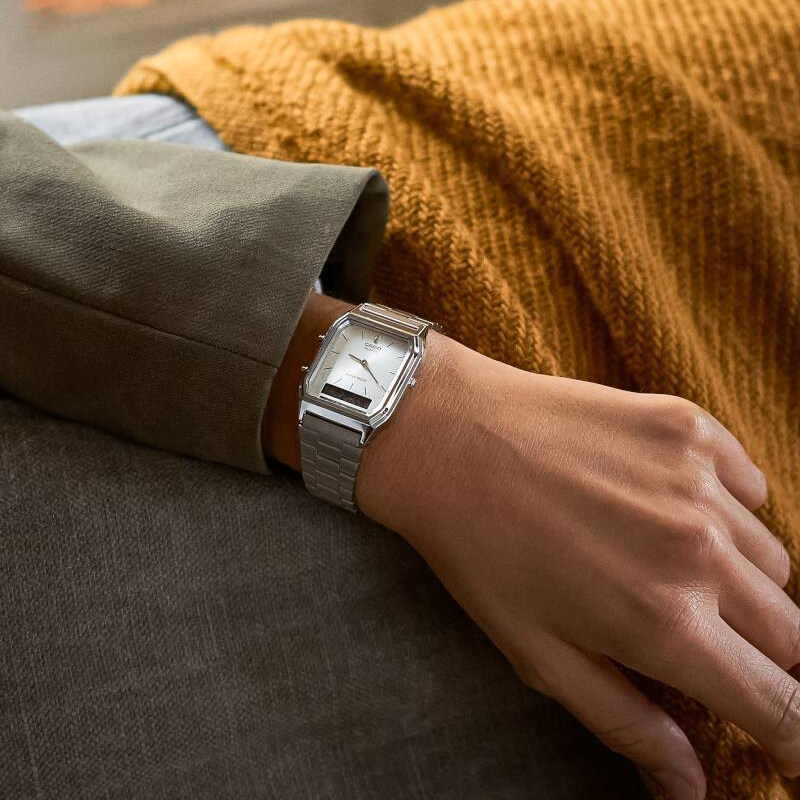 CASIO卡西欧手表复古小方块双显学生男女情侣款 230礼物 电子表AQ