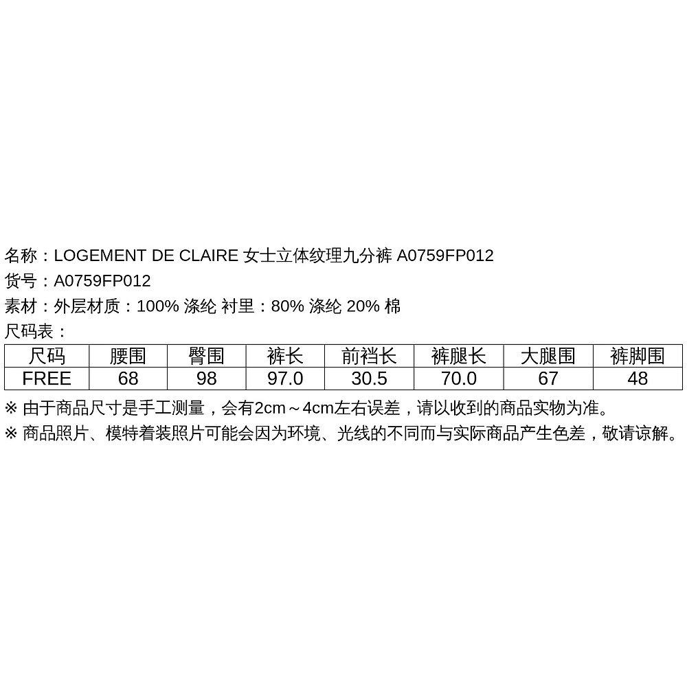 女士立体纹理九分裤 1h可退 CLAIRE A0759FP 日本直邮LOGEMENT