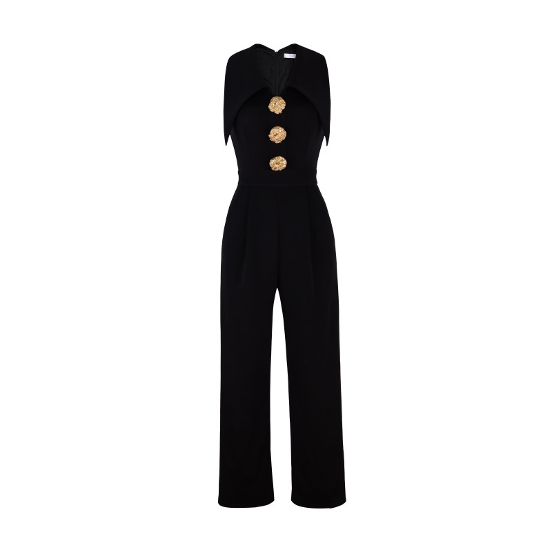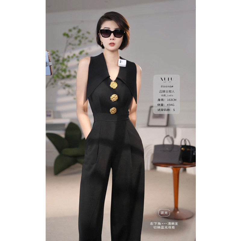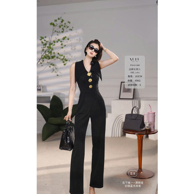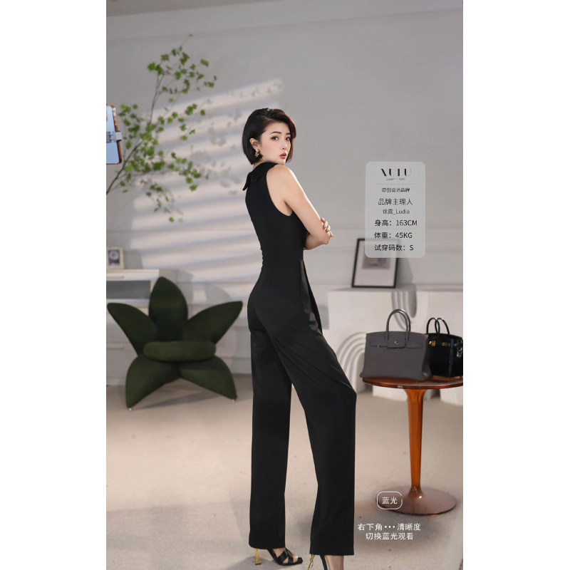 新款 连体裤 醋酸大女主时尚 显瘦大翻领无袖 黑色修身 XULU原创夏季