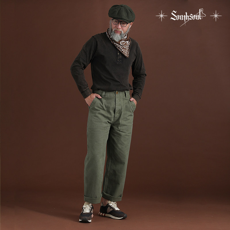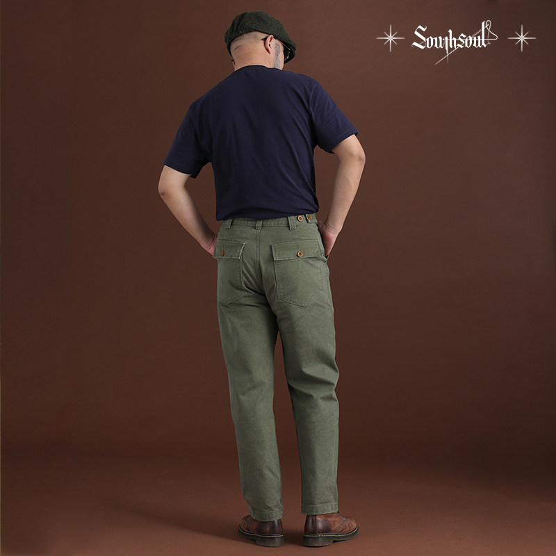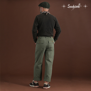 果实扣调节腰多袋休闲裤 美式 裤 工装 复古重磅纯棉橄榄绿og107军裤