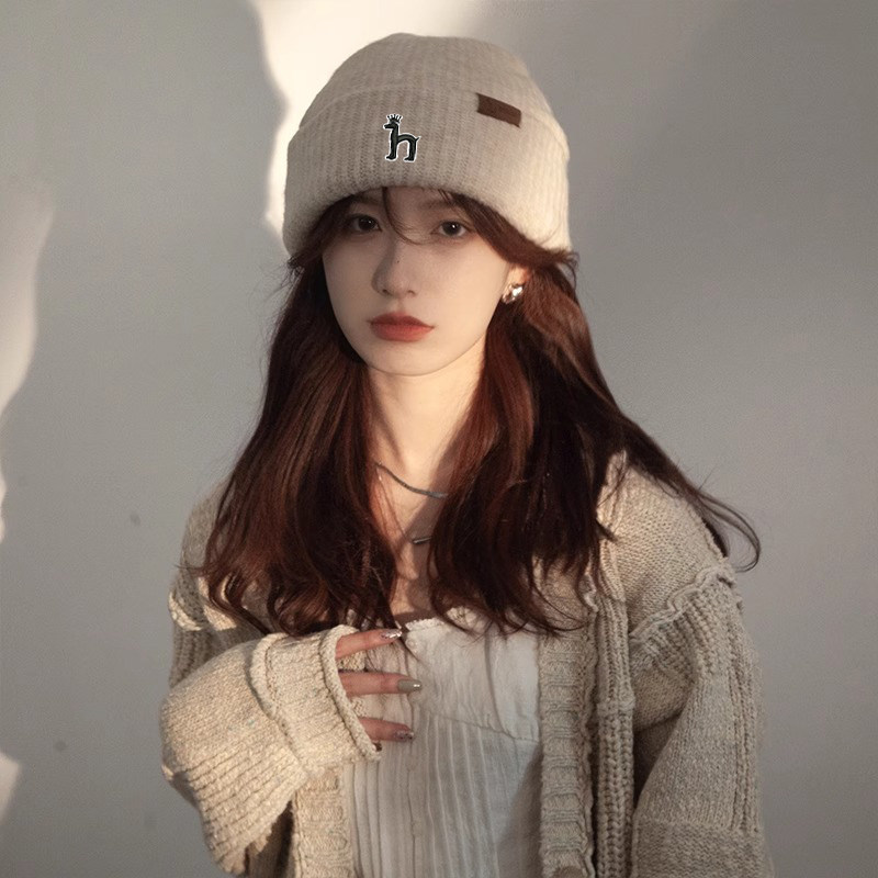 哈吉斯船长针织帽子女冬季 加厚保暖百搭护耳大头围显脸小毛线帽子