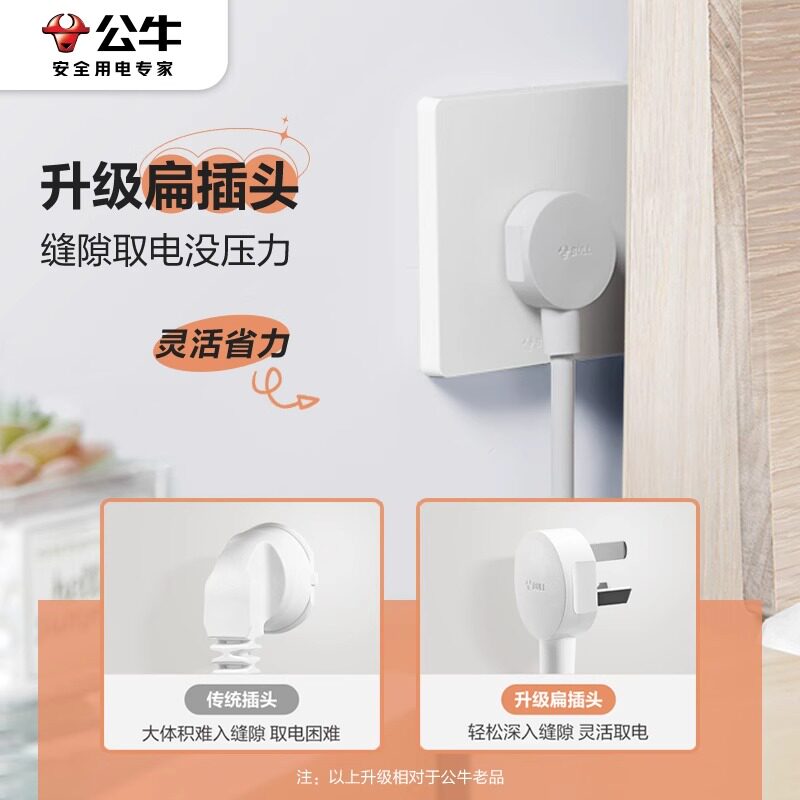 公牛插座延长线五孔缝隙插头接线板拖线板家用冰箱风扇