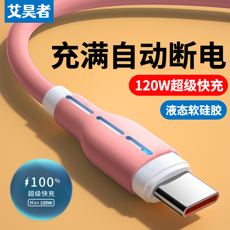 艾昊者硅胶数据线Type c6A适用华为vivo荣耀OPPO小米tepyc快充tpyec超级充电器线tapec手机typc安卓车载tapyc