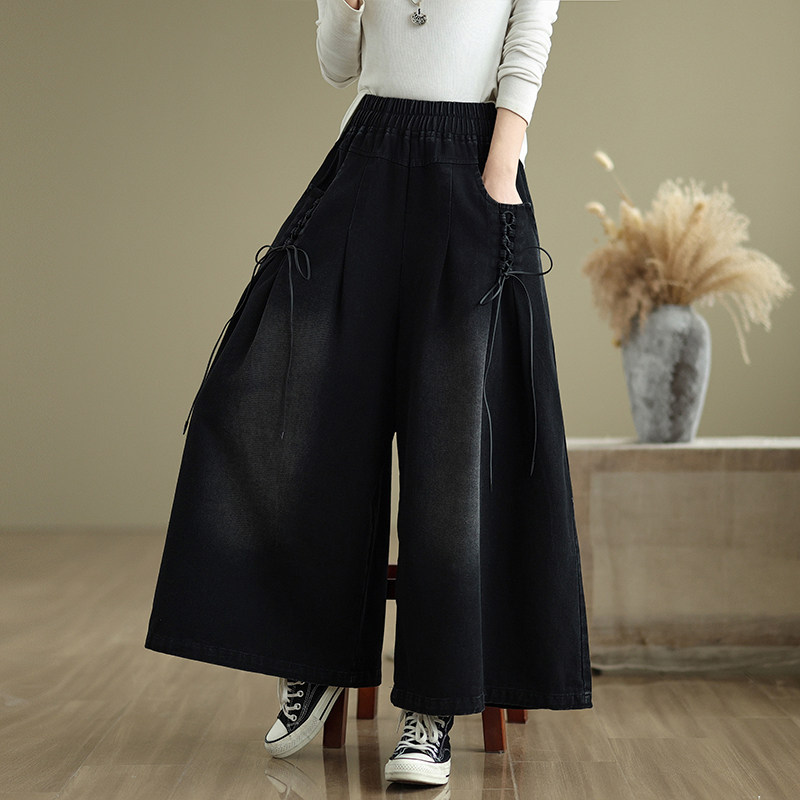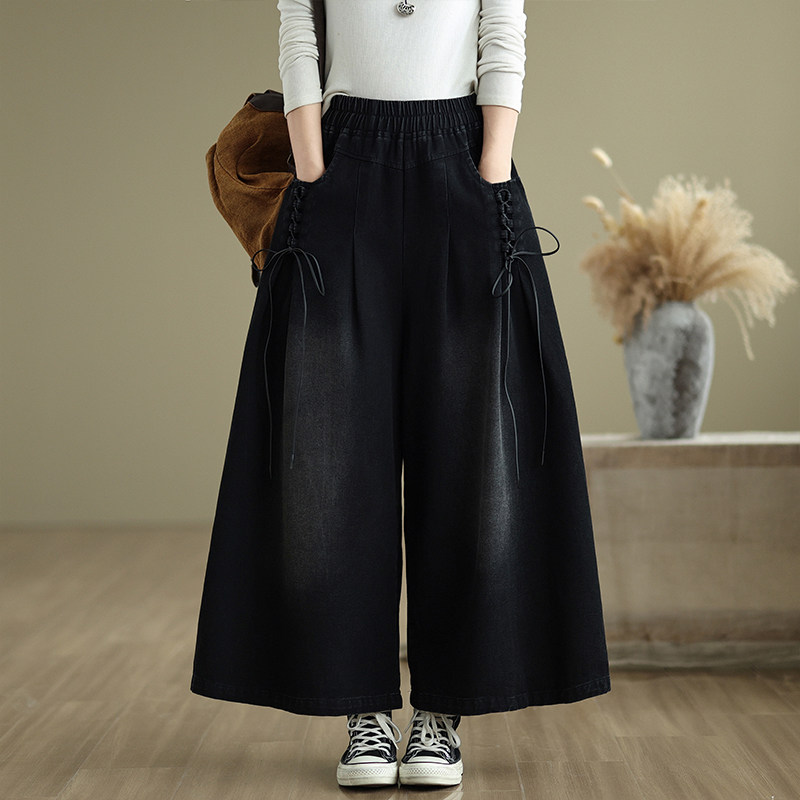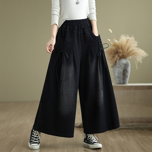 女装 遮肉显瘦高腰长裤 胖妹妹牛仔阔腿裤 胖mm宽松裙裤 2025春装 大码