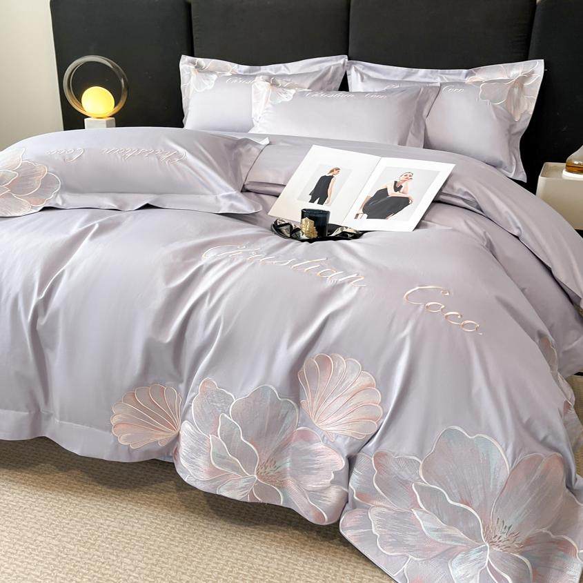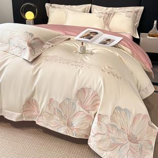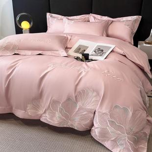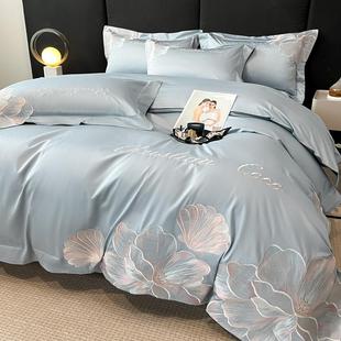 轻奢A类160支纯棉四件套加厚磨毛花卉刺绣被套全棉床单床笠款 床品