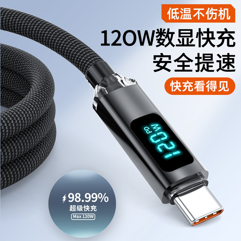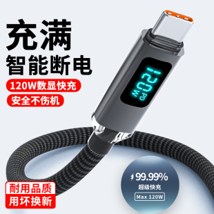 艾昊者智能数显快充数据线type c120W超级闪充6A适用华为oppo小米荣耀手机闪充线6A编织防折自动断电功率显示