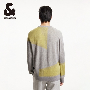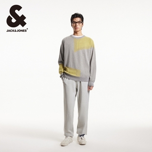 男装 撞色提花设计日常休闲宽松圆领毛衣男款 针织衫 杰克琼斯冬季