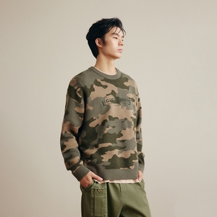 男装 迷彩花纹宽松圆领毛衣针织衫 新款 杰克琼斯冬季