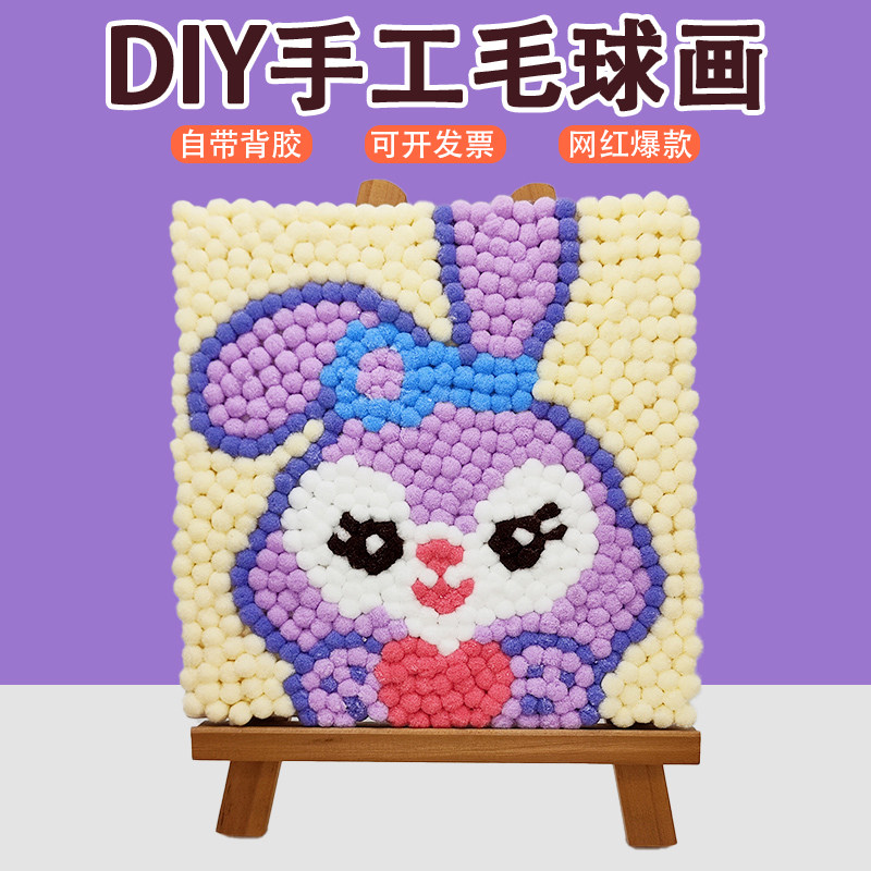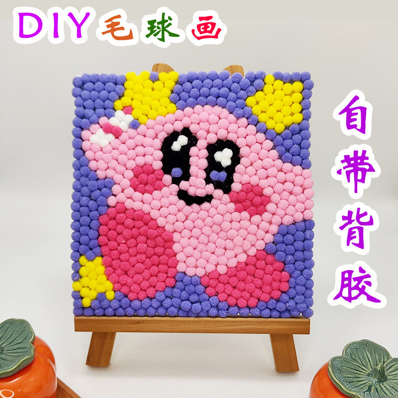 儿童手工毛球画diy制作材料包学校亲子活动作业创意卡通粘贴画