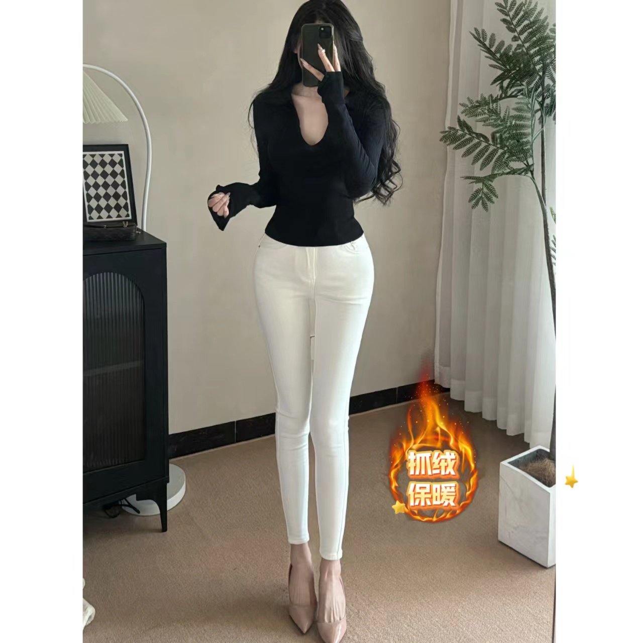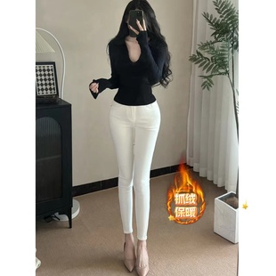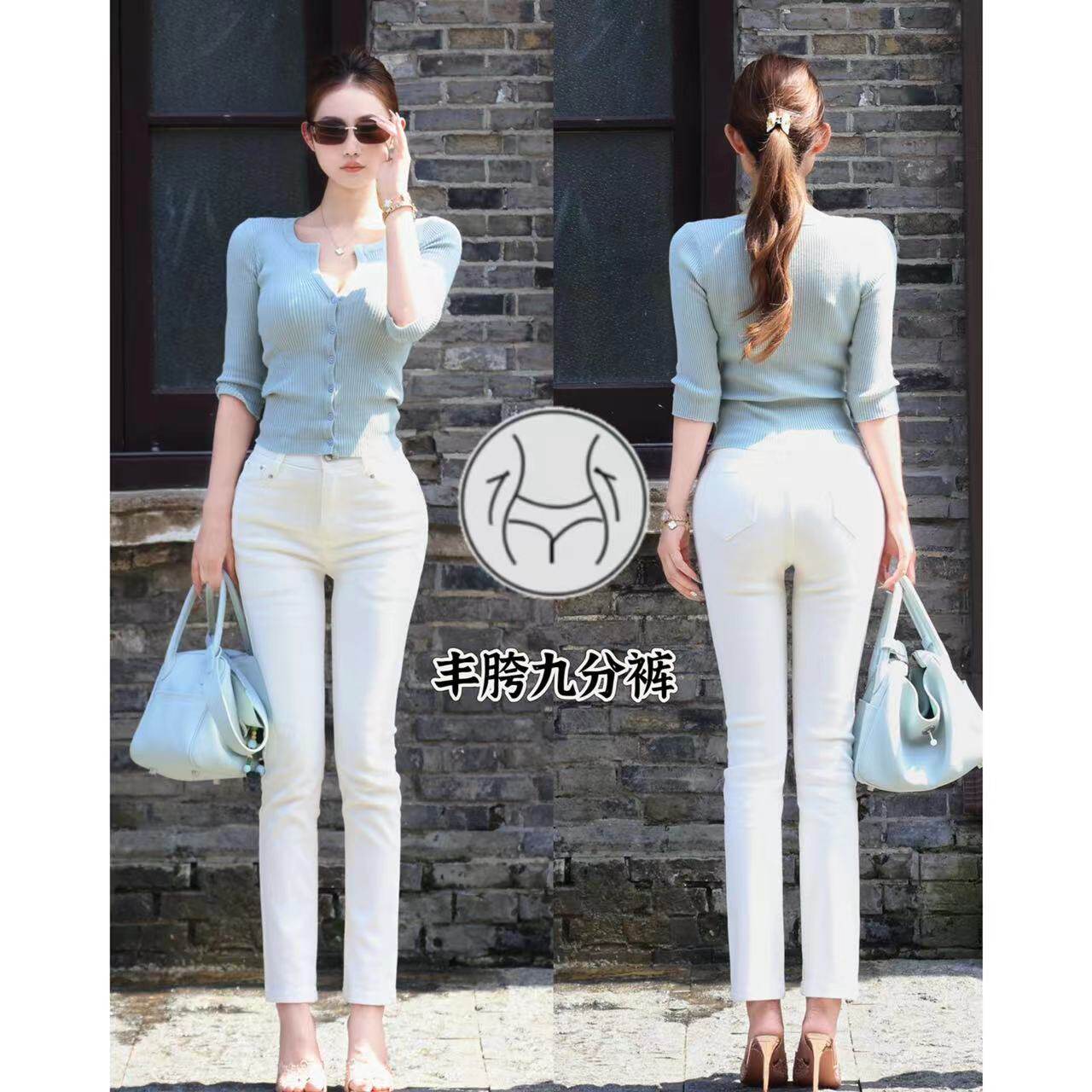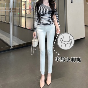 韩系高腰提臀简约小脚裤 纯欲丰胯~韩女小白裤 牛仔裤 一辛原创