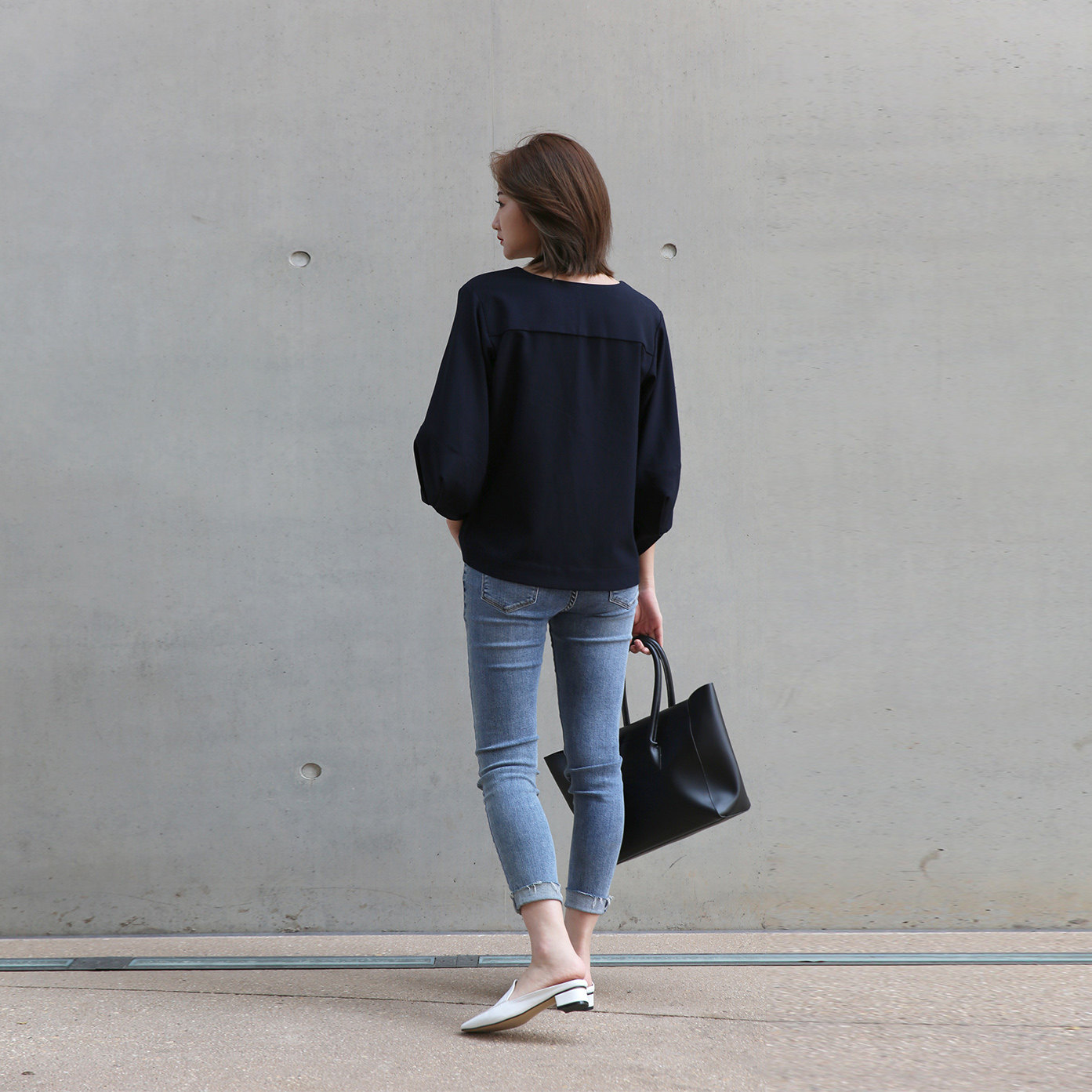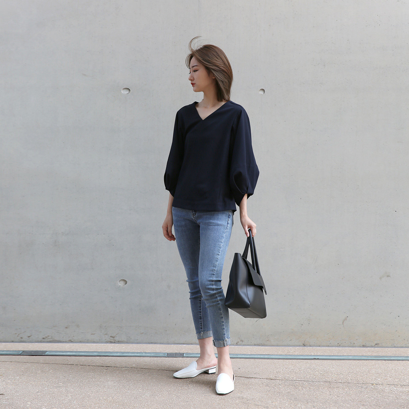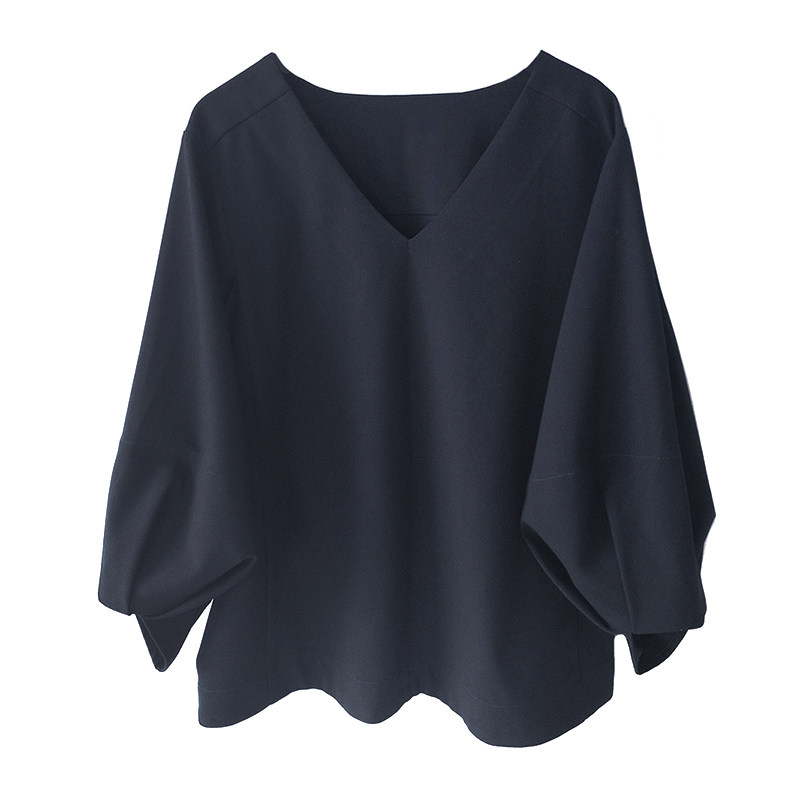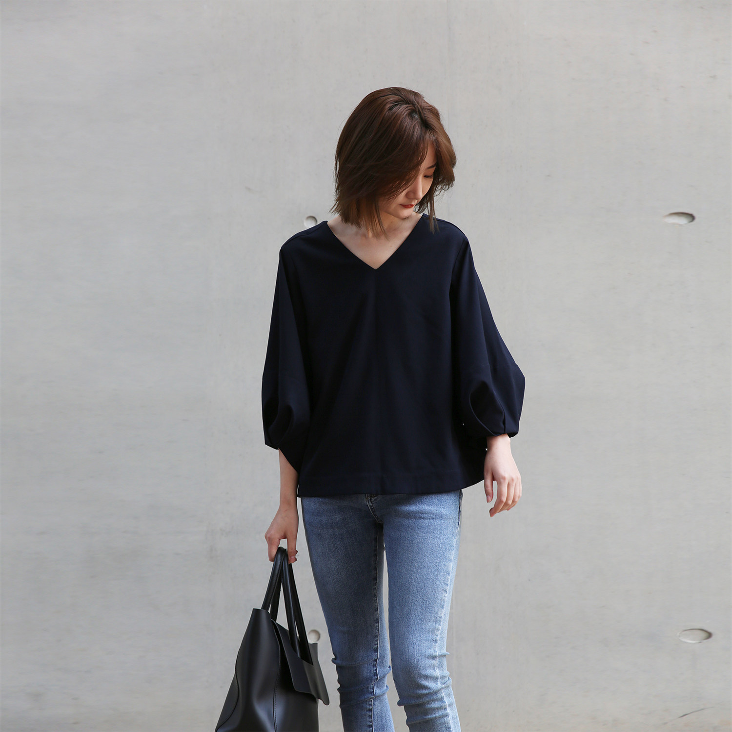 T恤显瘦气质衬衣个性 新款 百搭长袖 女宽松九分袖 v领垂感套头衬衫