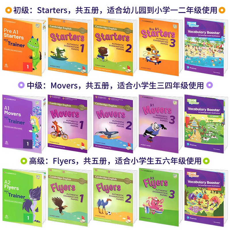 剑桥YLE真题集套装 全5册 Booster english Vocabulary Cambridge starters少儿英语一级考试教材备考资料 Pre Starters