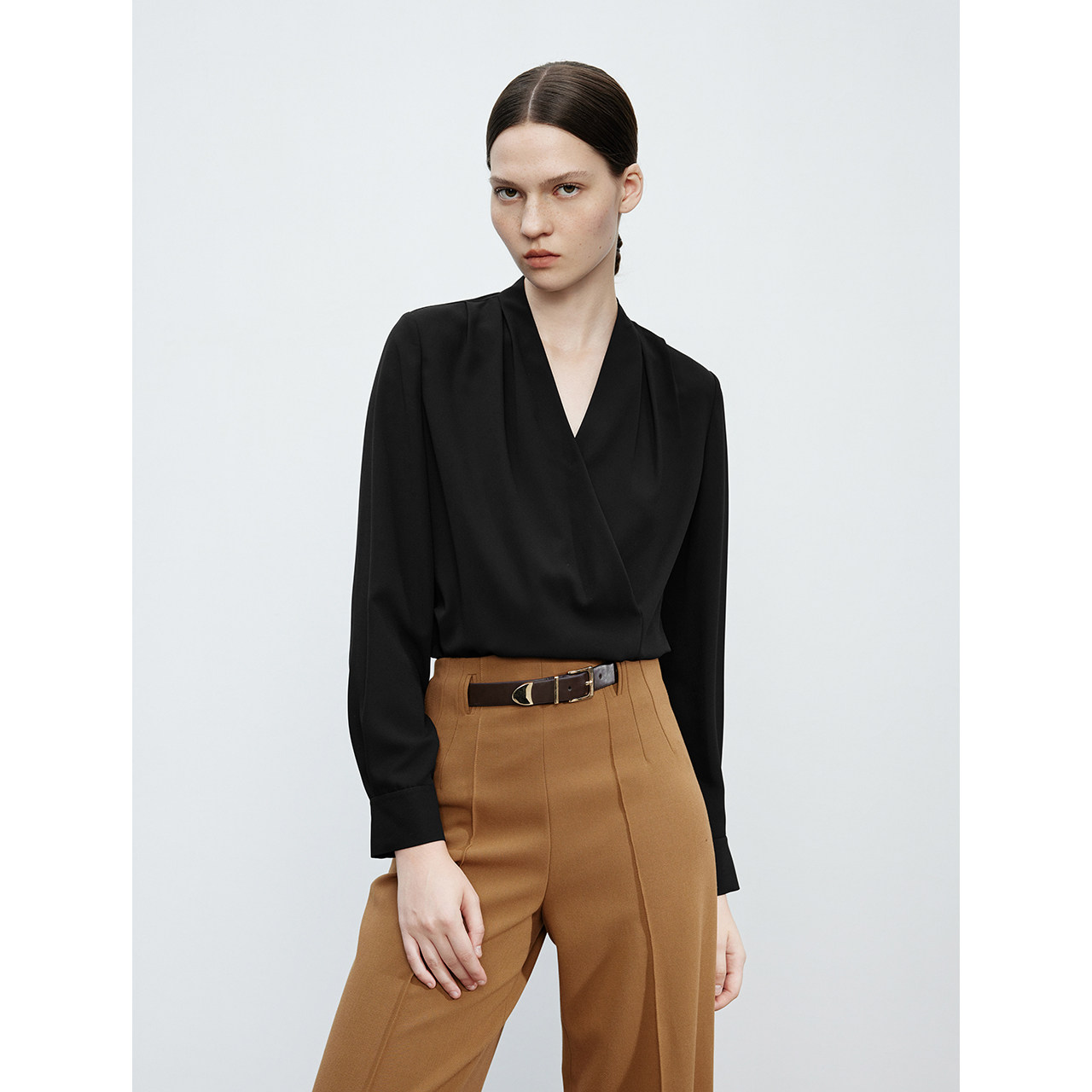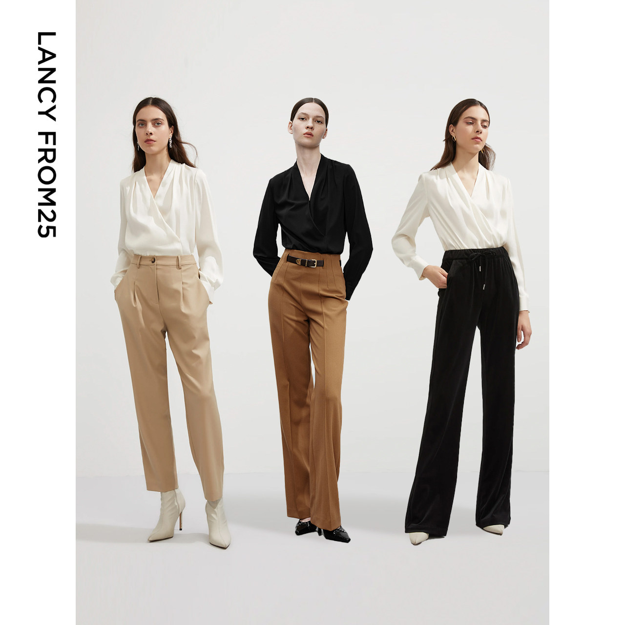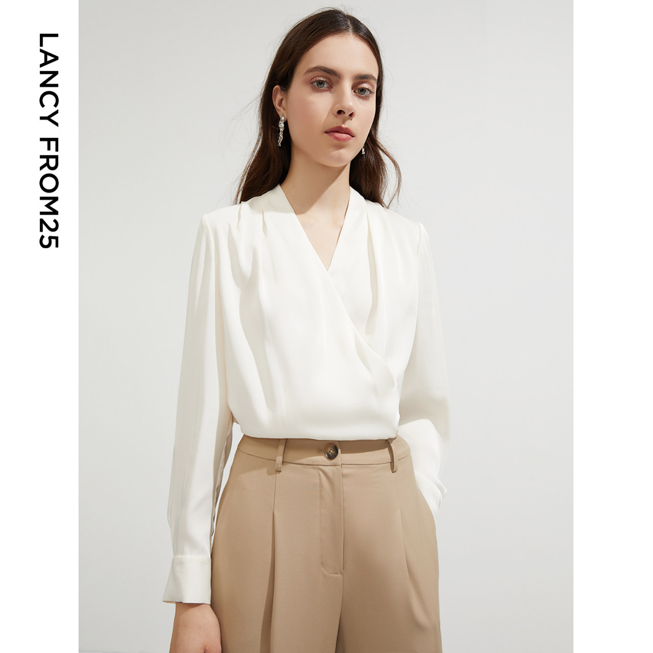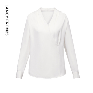 孙乐言同款 女春季 朗姿Basic衣橱 米白色V领气质衬衫 新款 法式