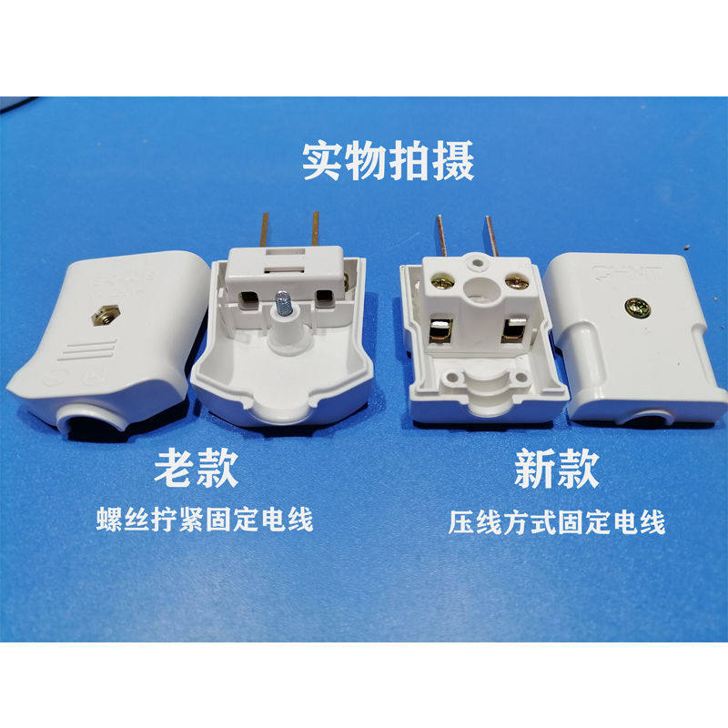 卧式 插头两脚插插头小型纯铜一体接线大功率10A防摔阻燃二脚插头