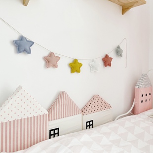 星星吊旗纯棉手工制作五角星装 饰小彩旗儿童房生日场景壁挂饰品
