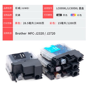 LC699XL 适用Brother兄弟原装 J2720彩色打印机墨水四色套装 J2320 BK黑色墨盒LC695XL彩色墨盒 LC699XL墨盒MFC