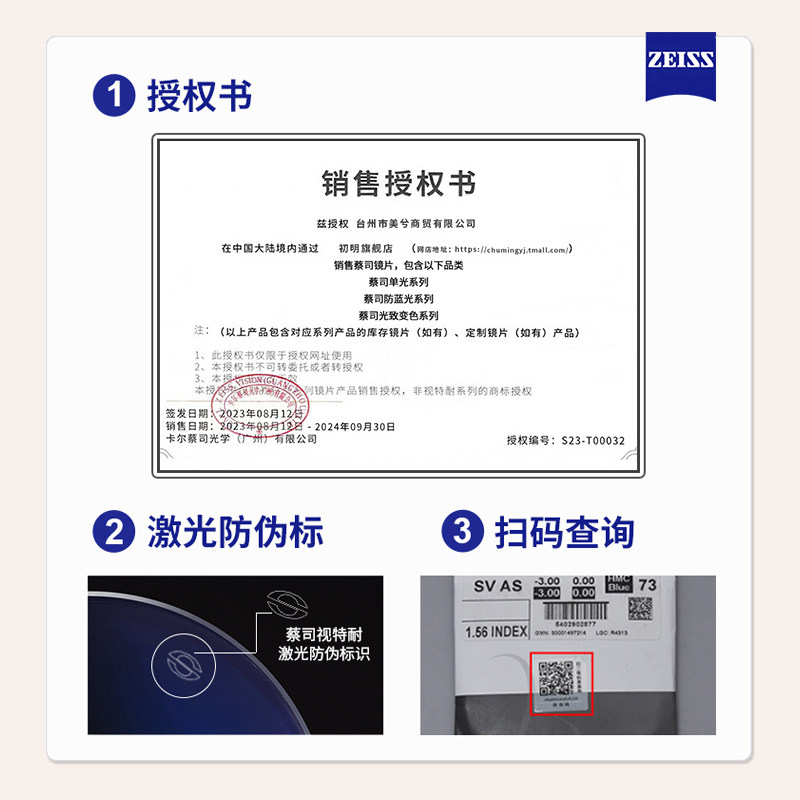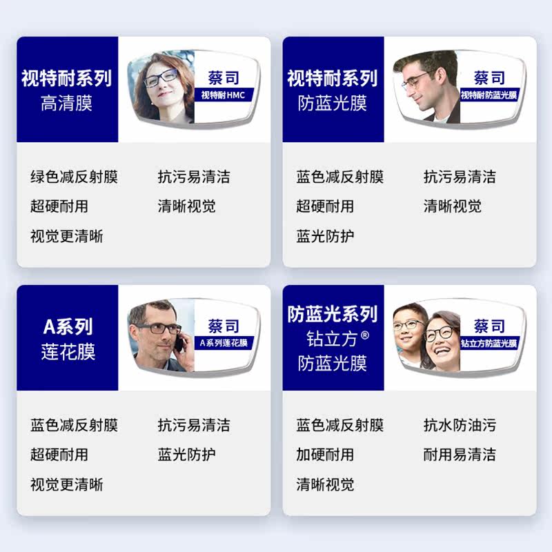 Zeiss蔡司泽锐镜片1.60防蓝光plus钻立方铂金膜1.74定制近视1片装