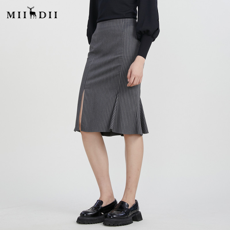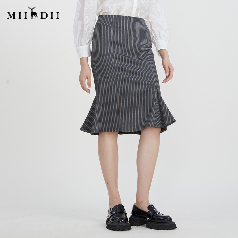 包臀裙中长鱼尾裙231MB0103 复古条纹修身 谜底半身裙2023春季 新款