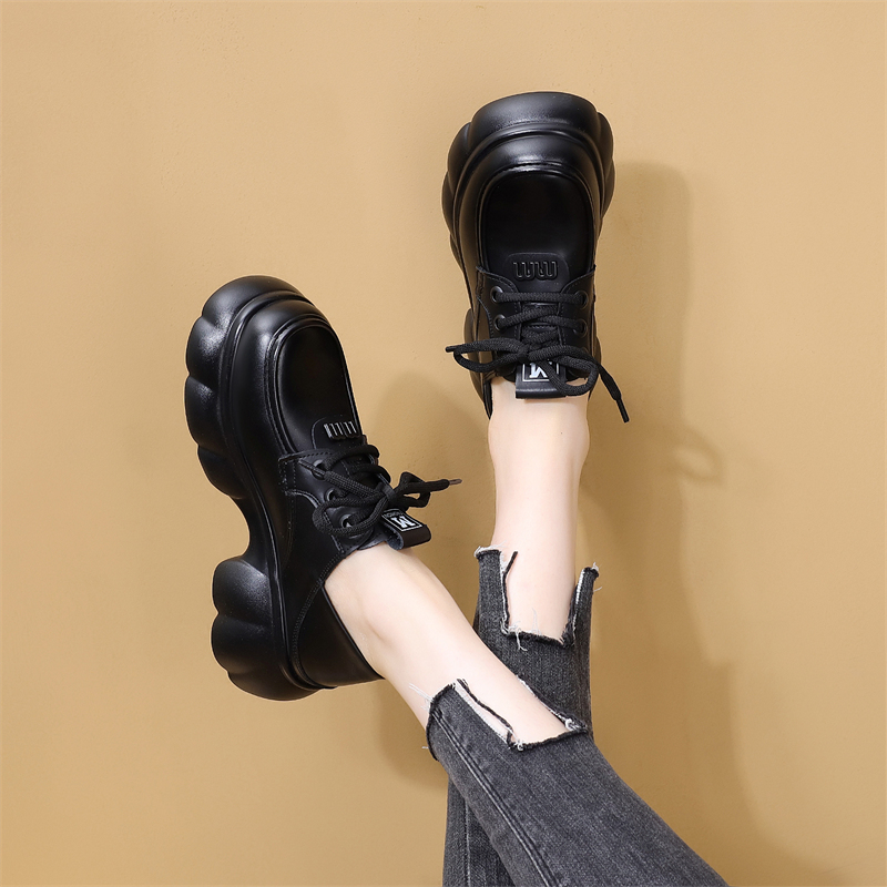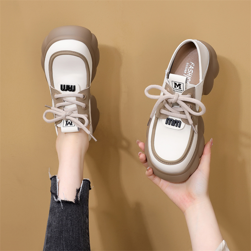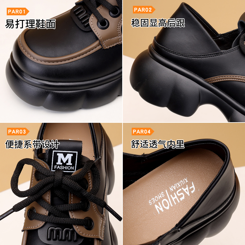 轻便防滑单鞋 厚底小皮鞋 英伦风学生系带洋气乐福鞋 新款 女2024春季