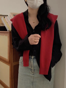 绵羊毛柔软针织披肩女打结外搭2024春纯色韩风百搭叠穿多用围巾