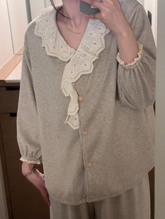 纯色大码 出口日本加厚纯棉情侣睡衣套装 家居服男士 长袖 女春秋季