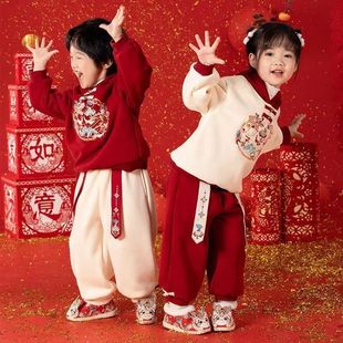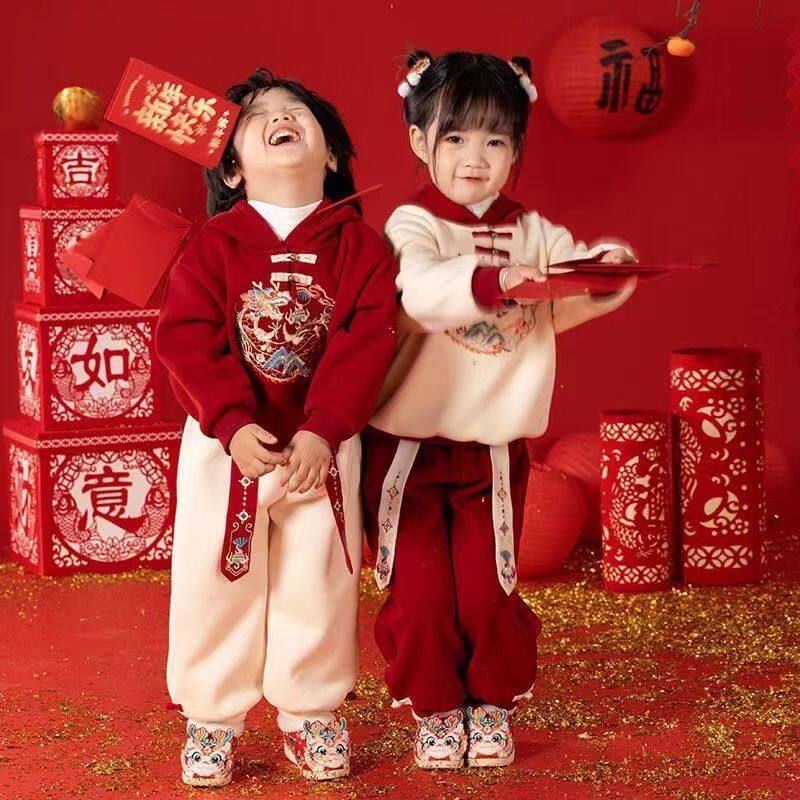 儿童拜年服套装 过年红色卫衣两件套 男女童秋冬汉服新年服宝宝唐装