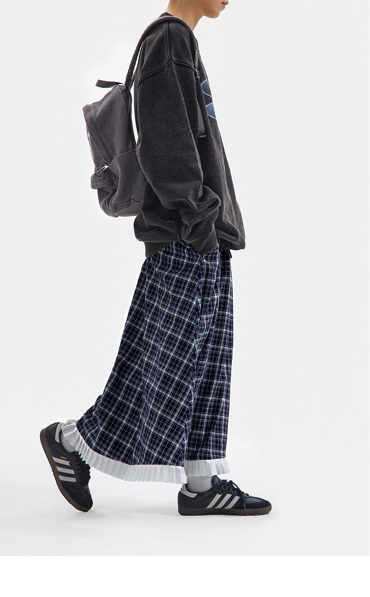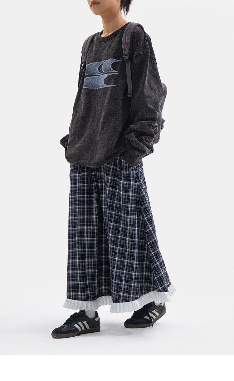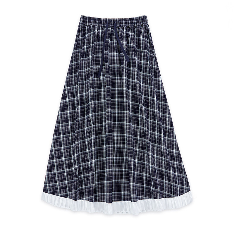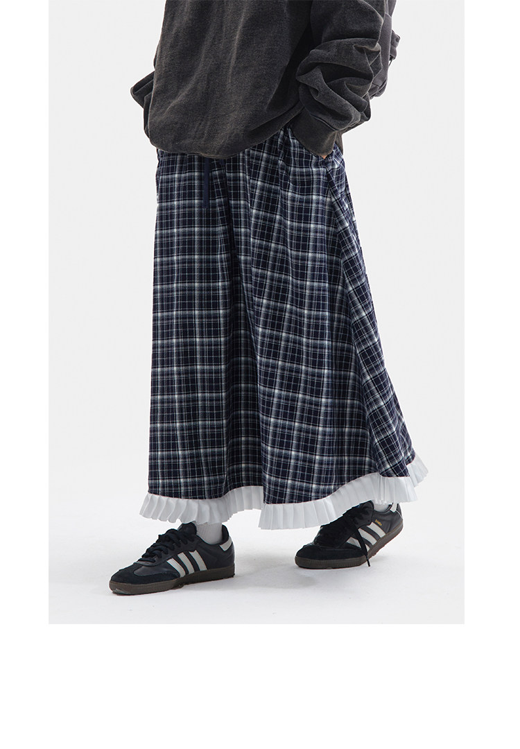 CryingCenter复古学院风格 纹拼接花边伞裙半身长裙橡筋腰哭喊中心