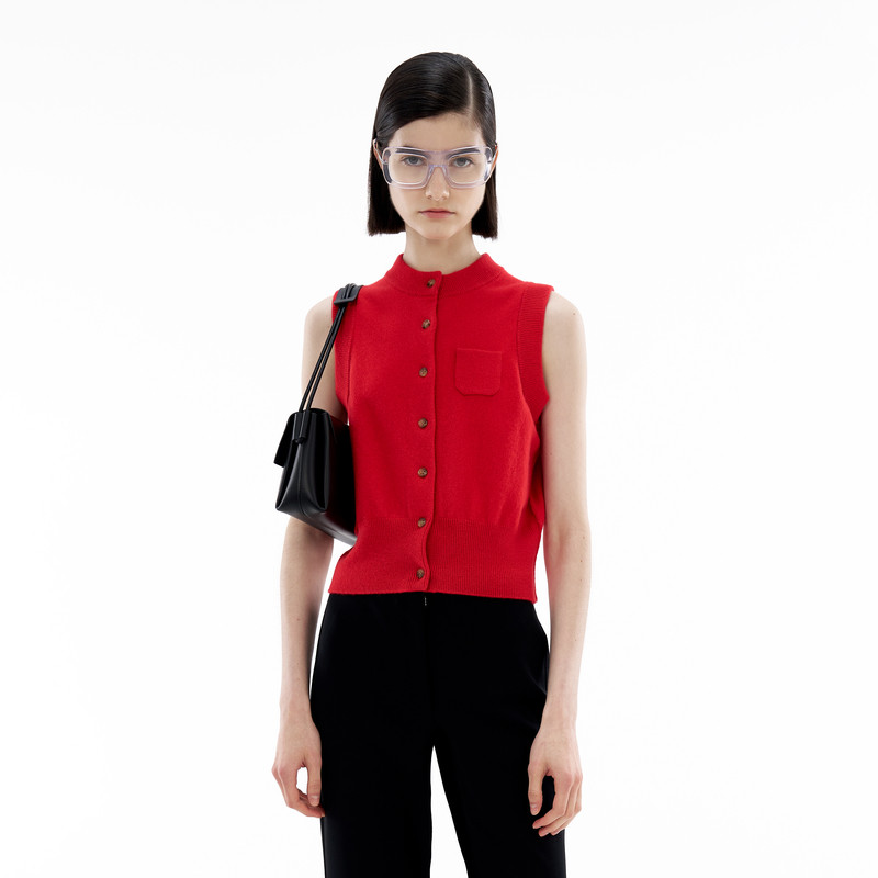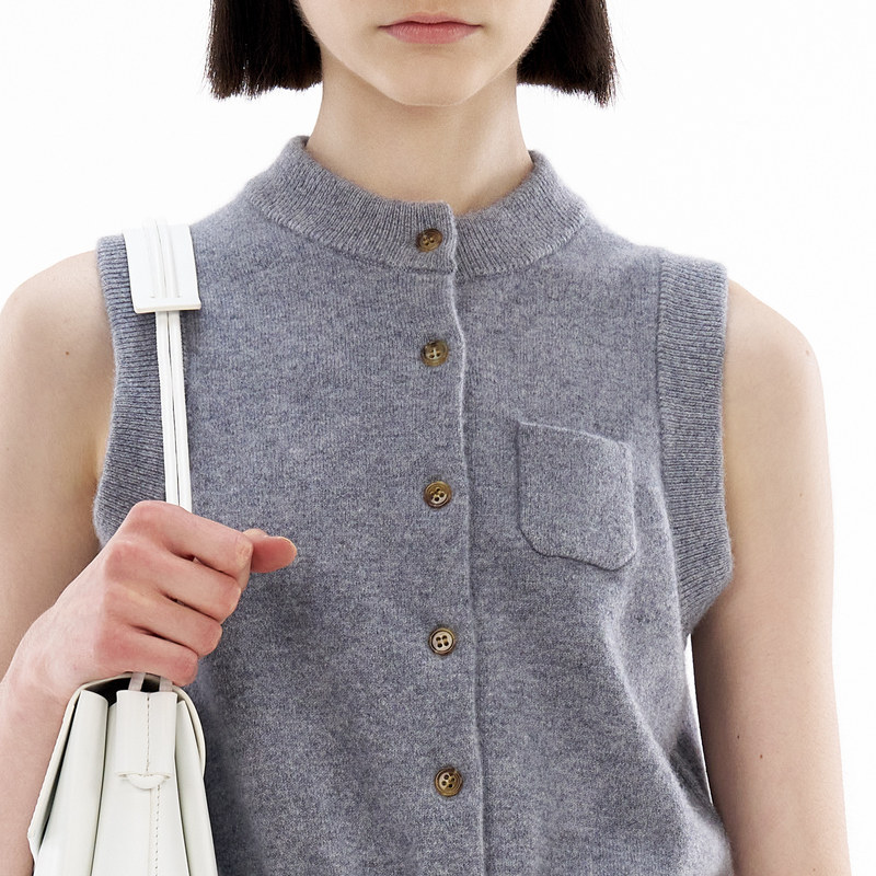 新款 IIIVIVINIKO春季 罗纹圆领针织背心上衣女 内蒙古山羊绒