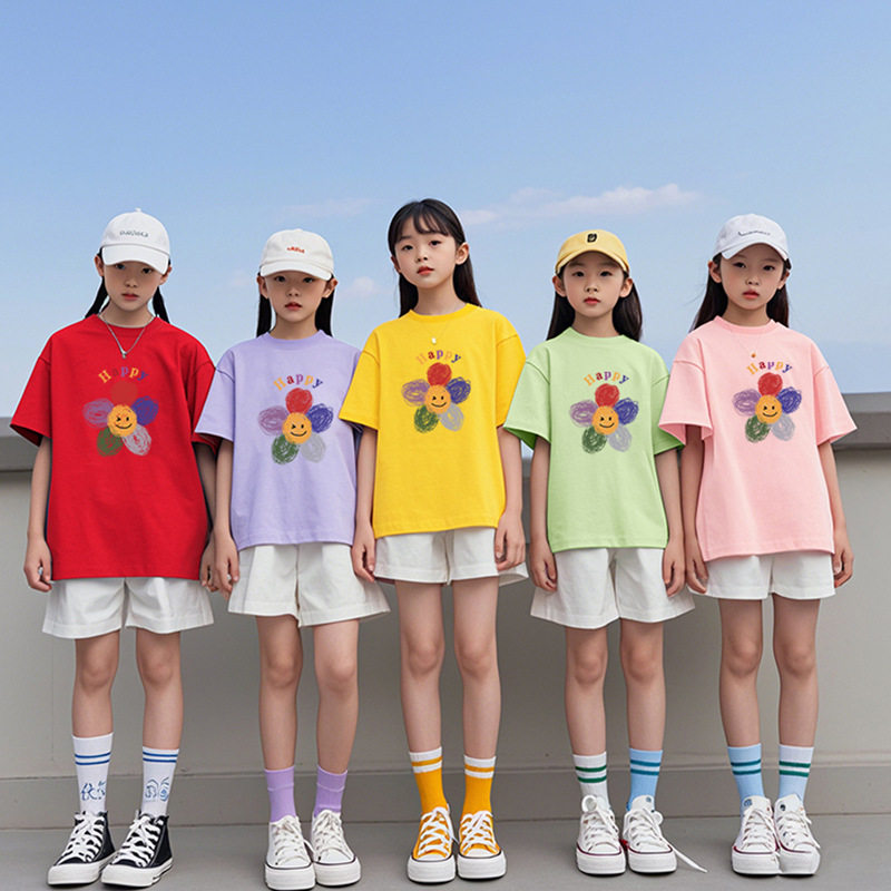 班服太阳花儿童夏季 亲子活动幼儿园团体班服糖果色童t恤 纯棉短袖