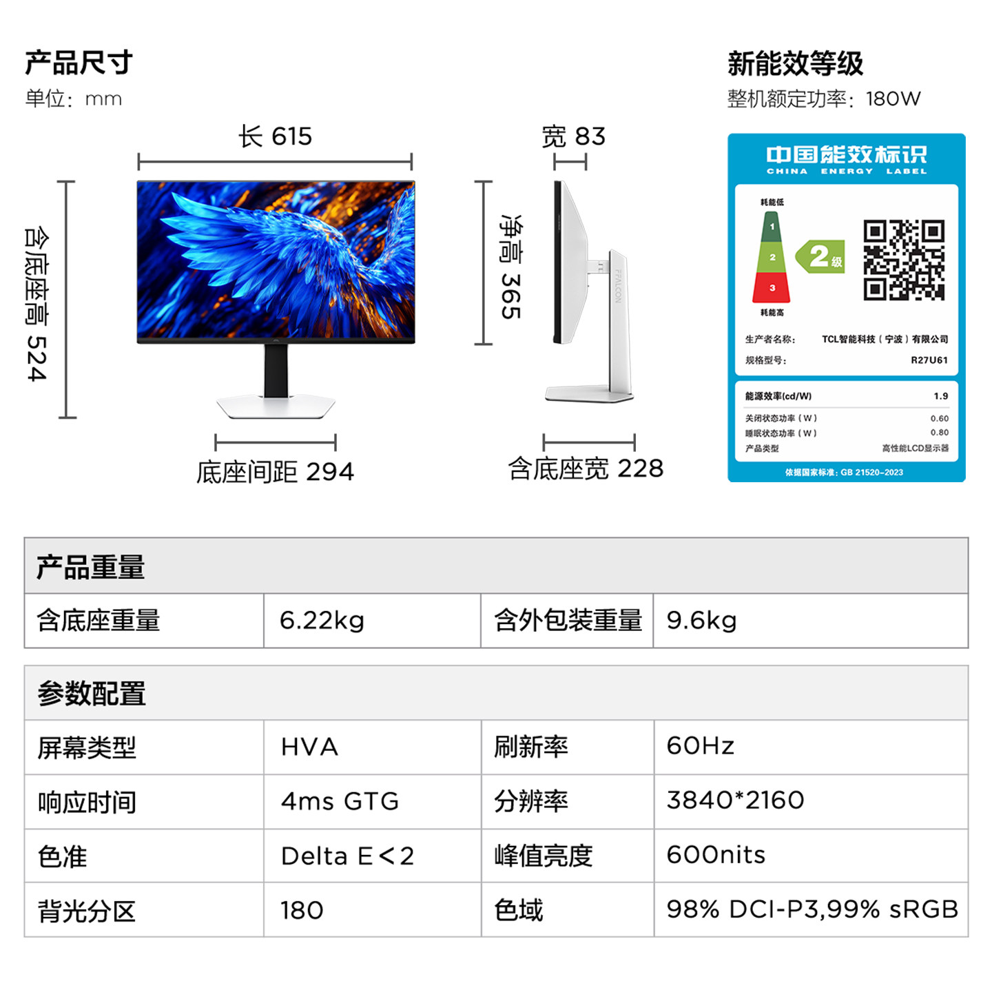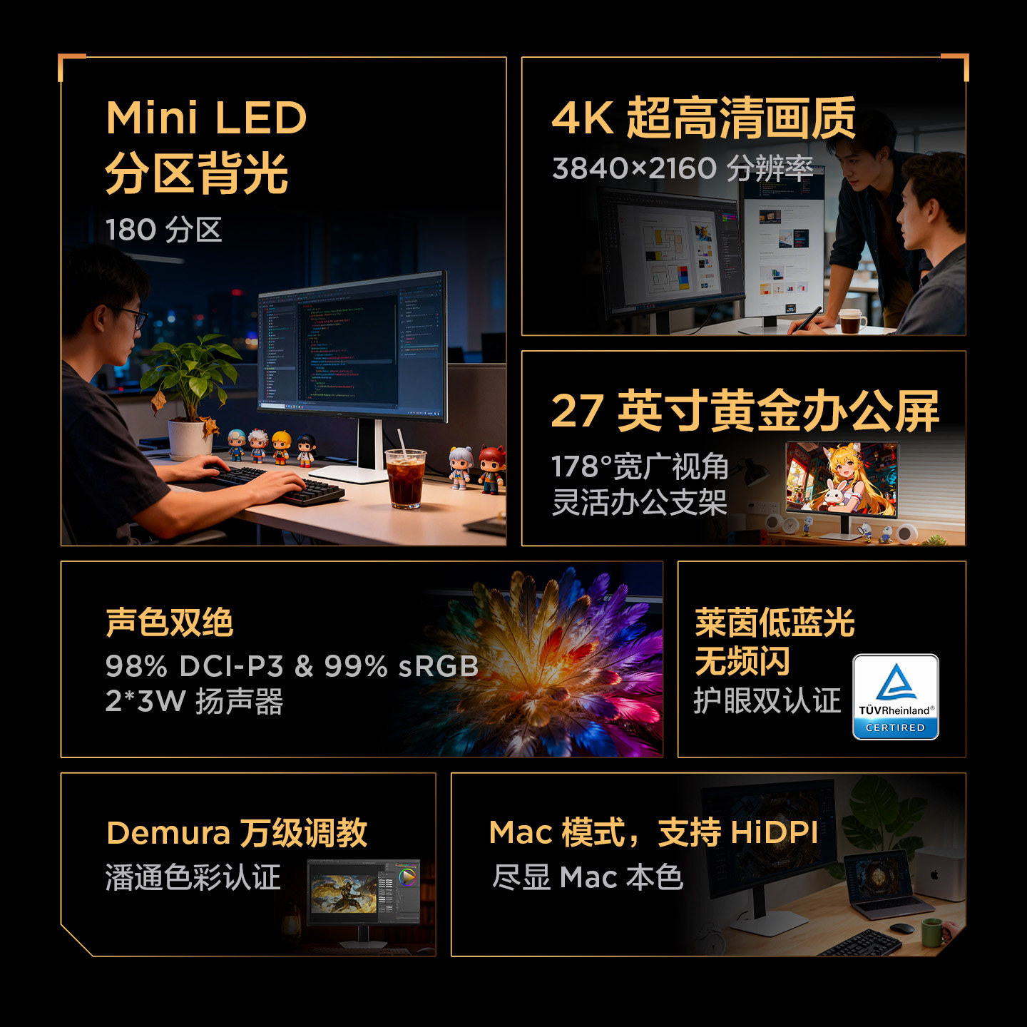 C65W Mac兼容设计Type QDMiniLED高清显示器 27英寸4K60Hz 雷鸟U6