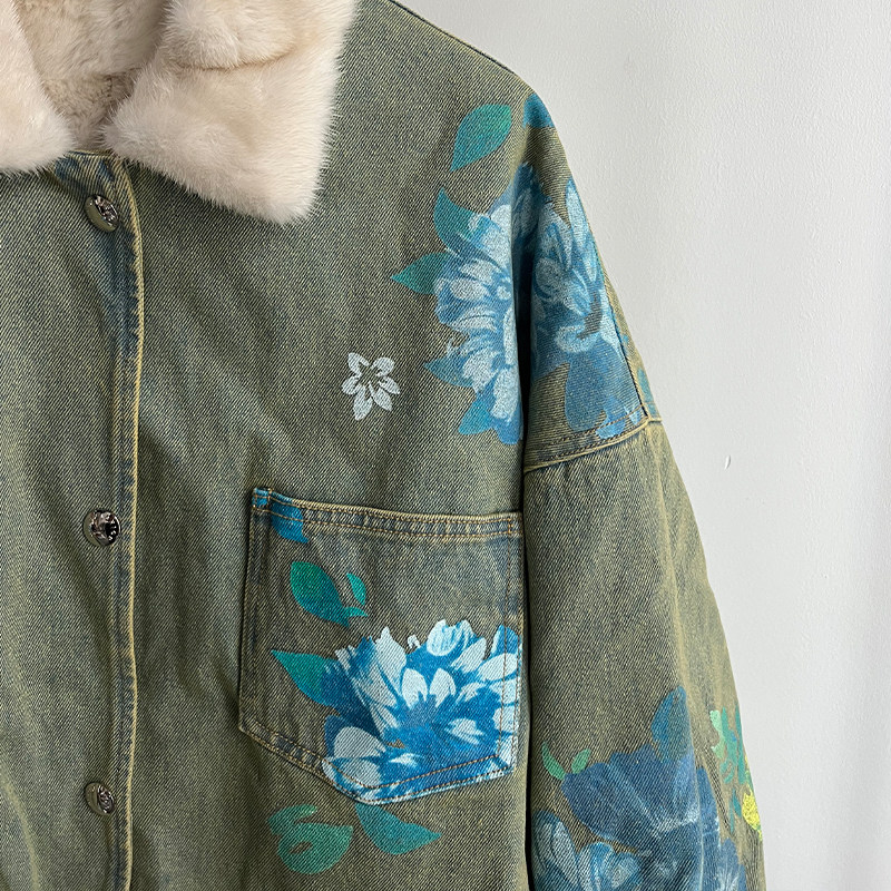 CulturE小众轻奢防貂毛毛绒加厚外套金属设计感宽松纯色短款 皮草