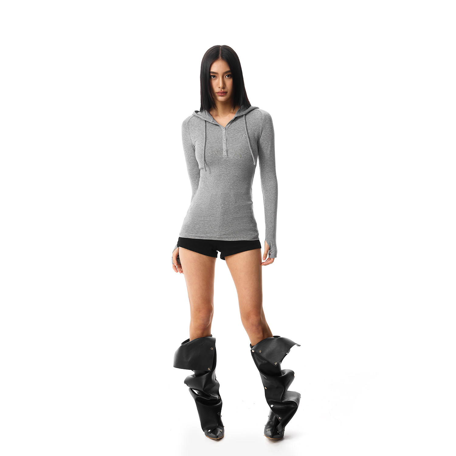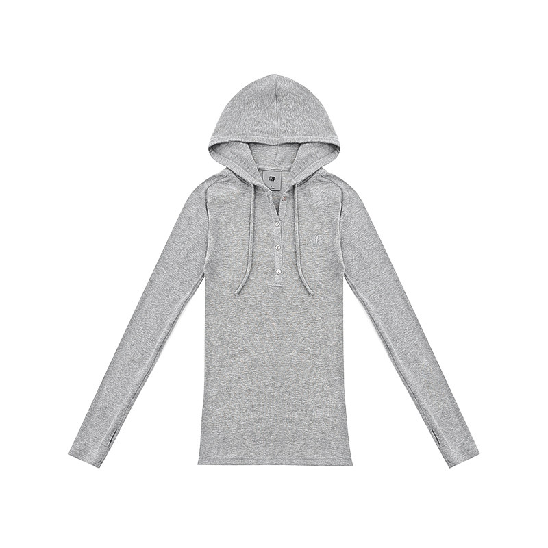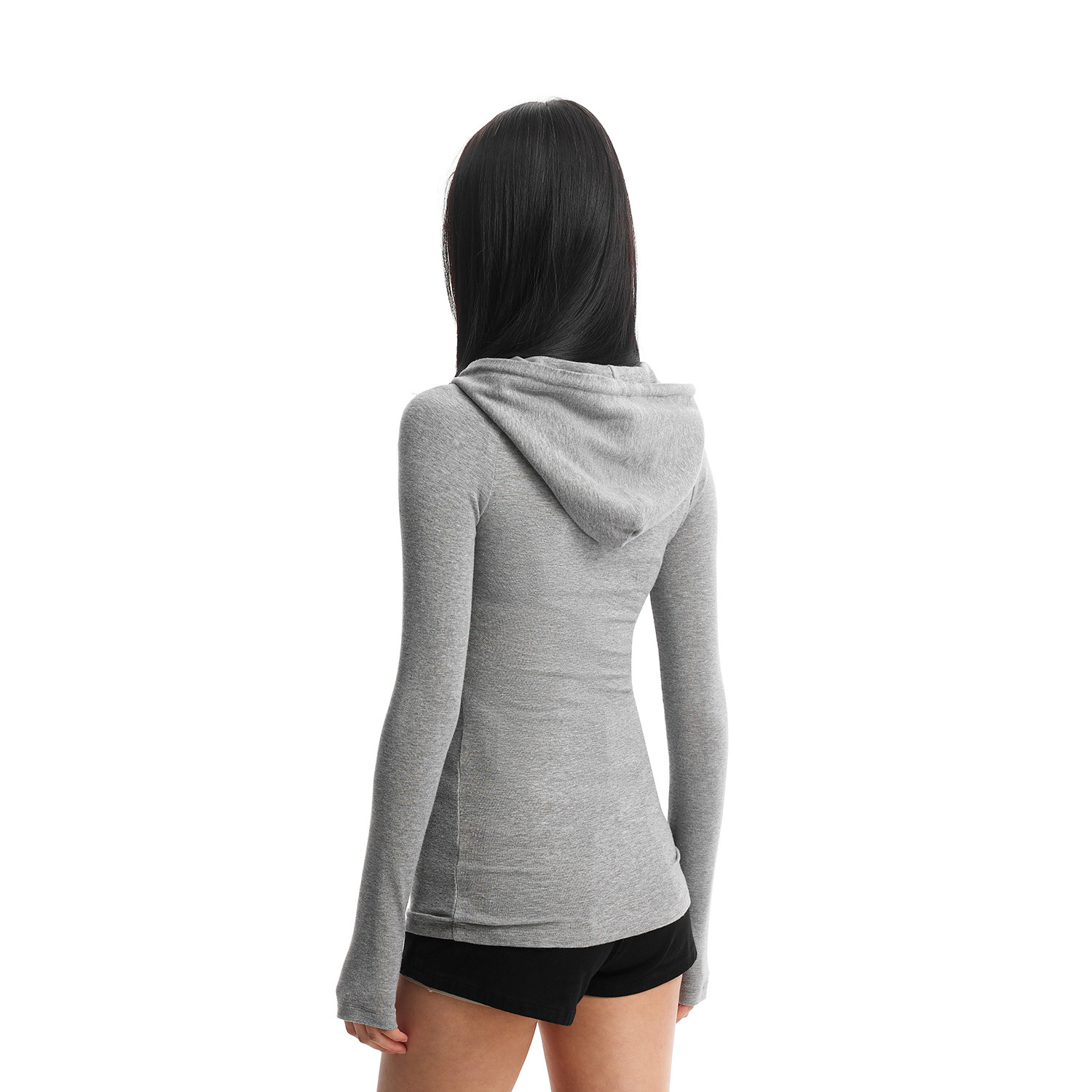 修身 t恤女秋季 显瘦打底上衣 辣妹V领纽扣可调节连帽长袖 FDR官方店