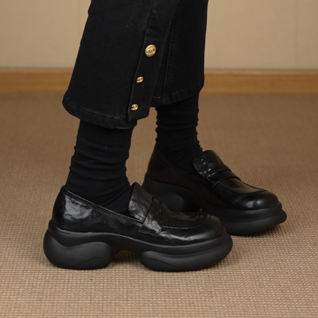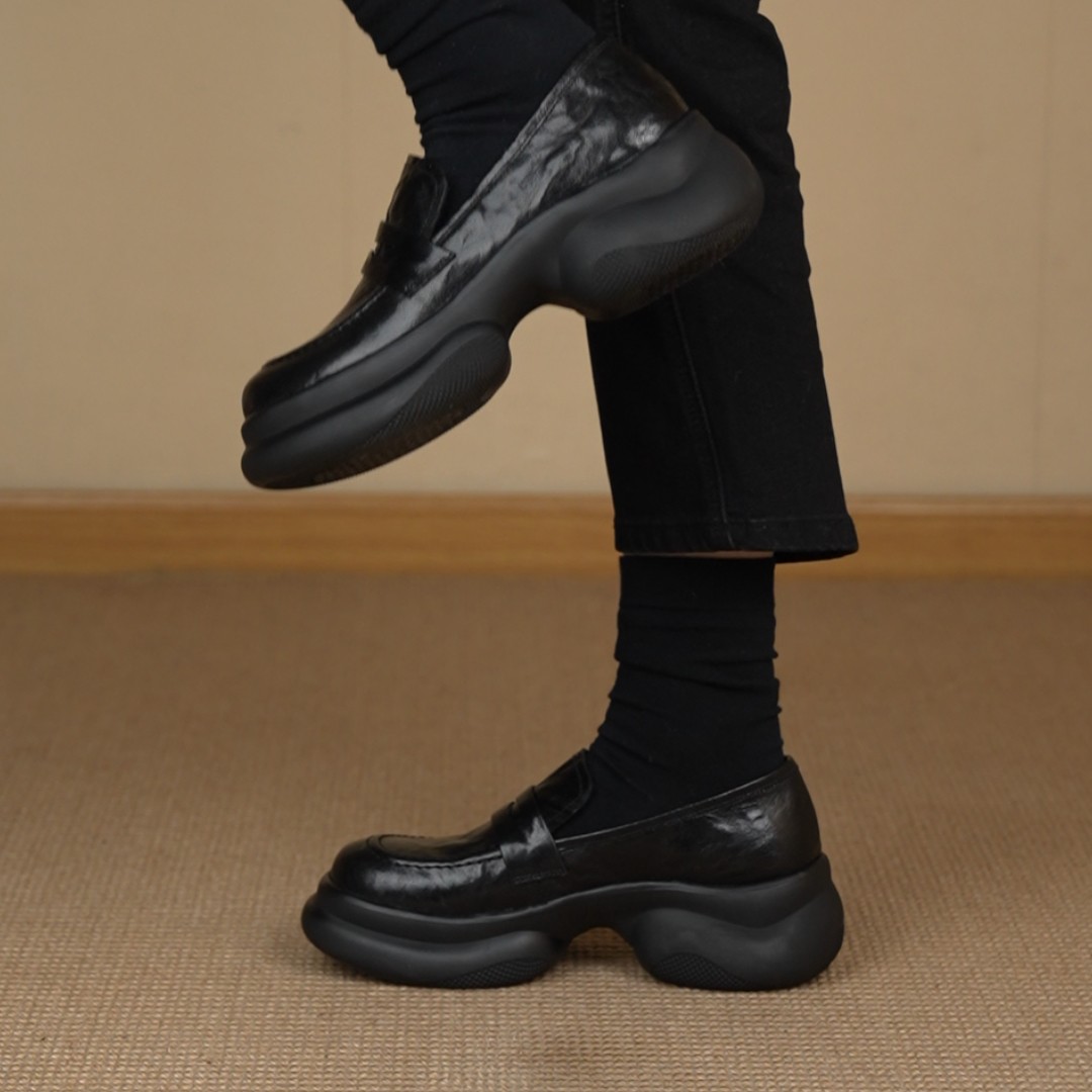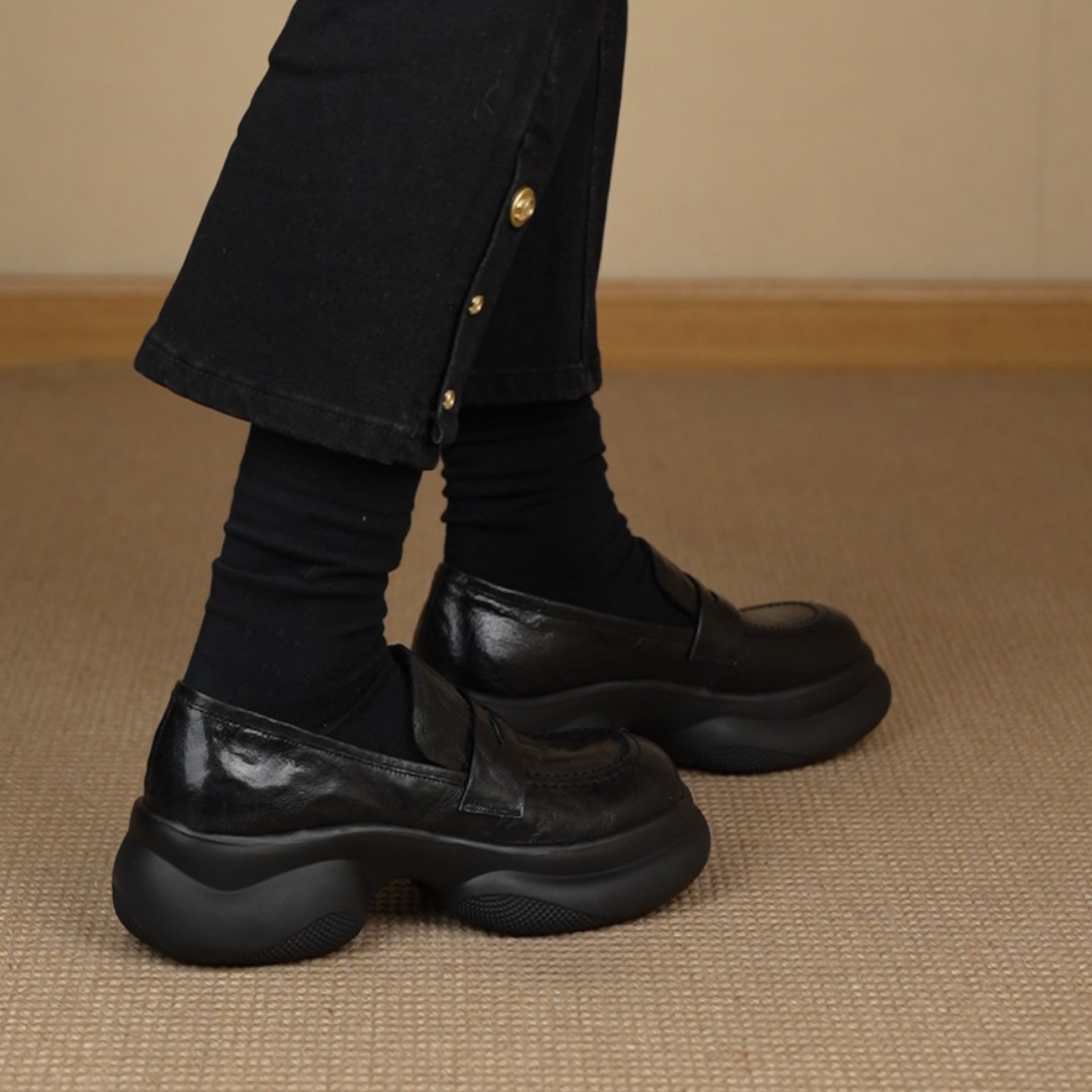 复古圆头懒人乐福鞋 6cm简约百搭运动厚底小皮鞋 NNMISS·34