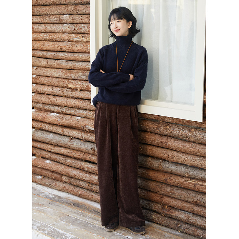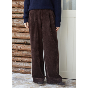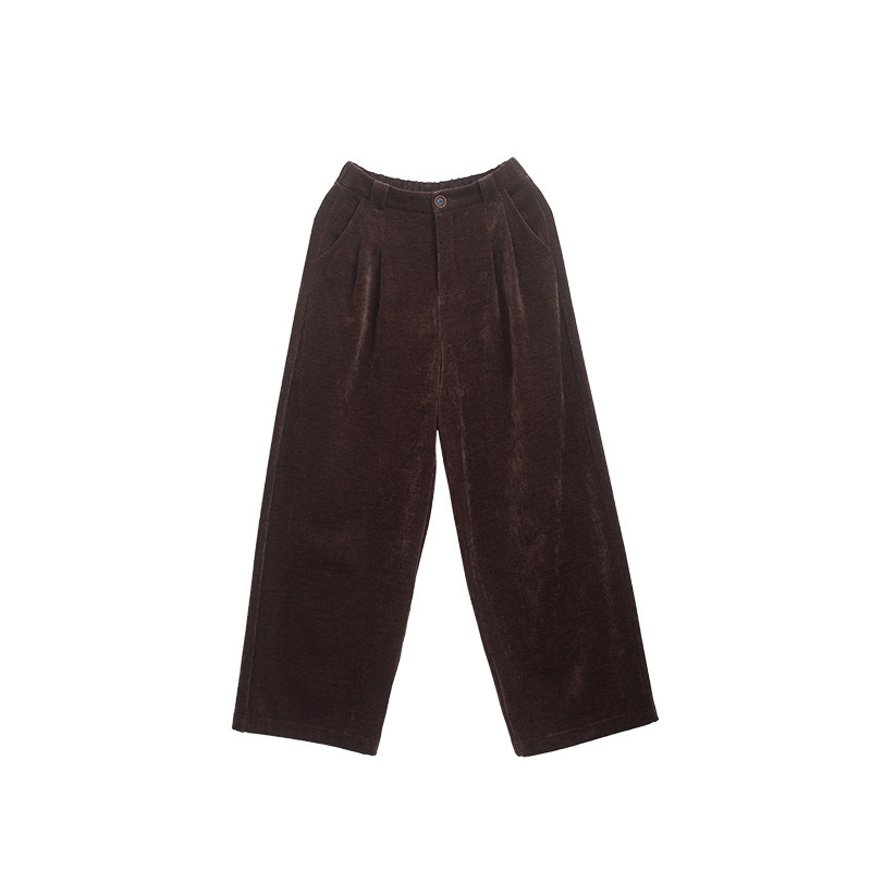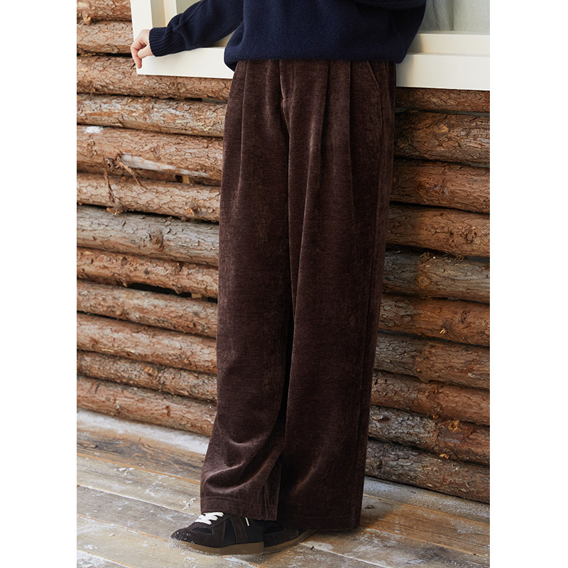 文艺范雪尼尔咖色直筒阔腿裤 冬季 女显腿长 自在而行 忘城A769座