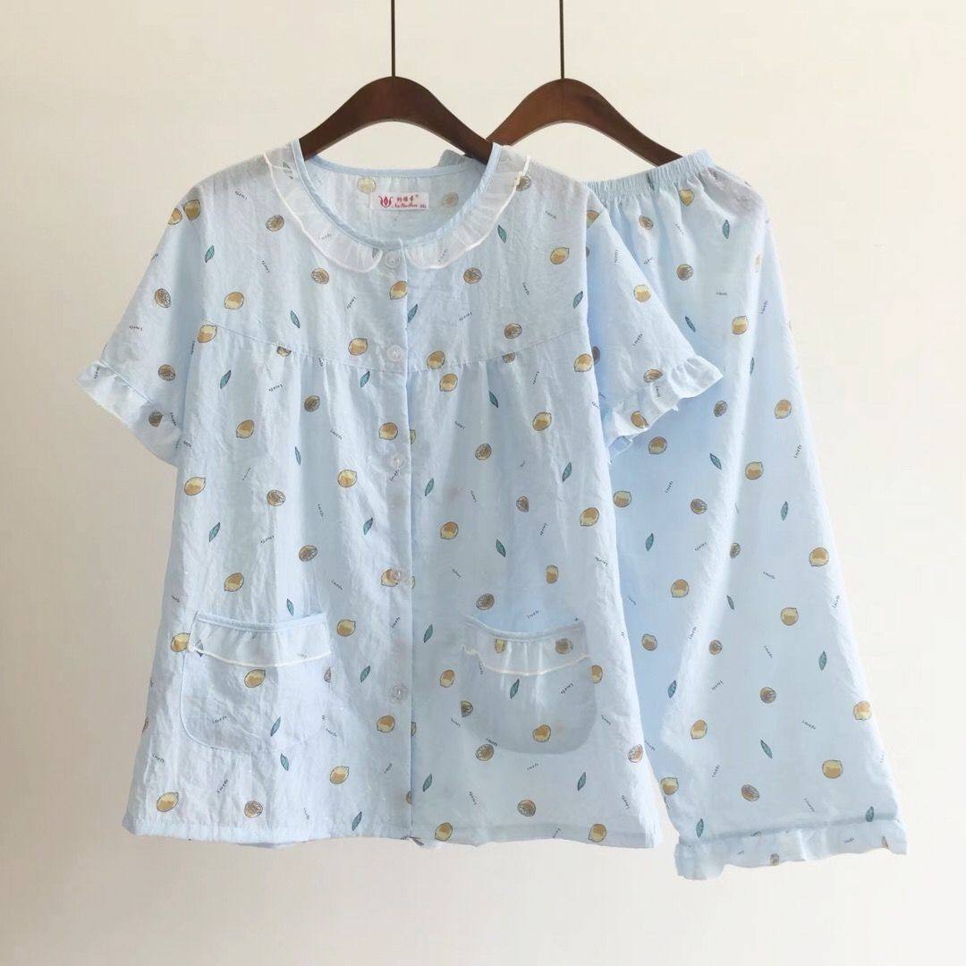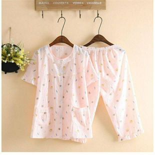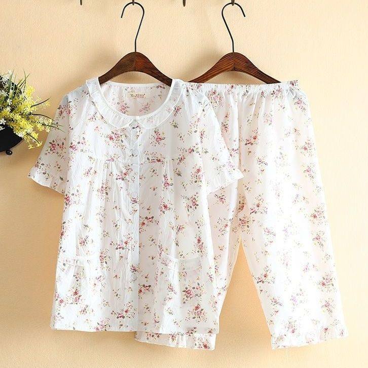 人造棉家居服套装 短袖 中年妈妈白色大花朵薄款 睡衣女夏季 七分裤