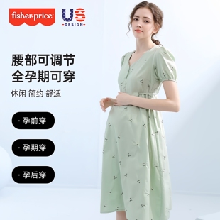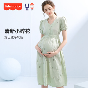 法式 费雪孕妇连衣裙夏2026新款 宽松大码 纯棉碎花裙时尚 孕期裙 夏装